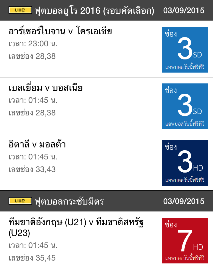 บอลวันนี้ ฟรีทีวีถ่ายทอดสด (24/10/58)