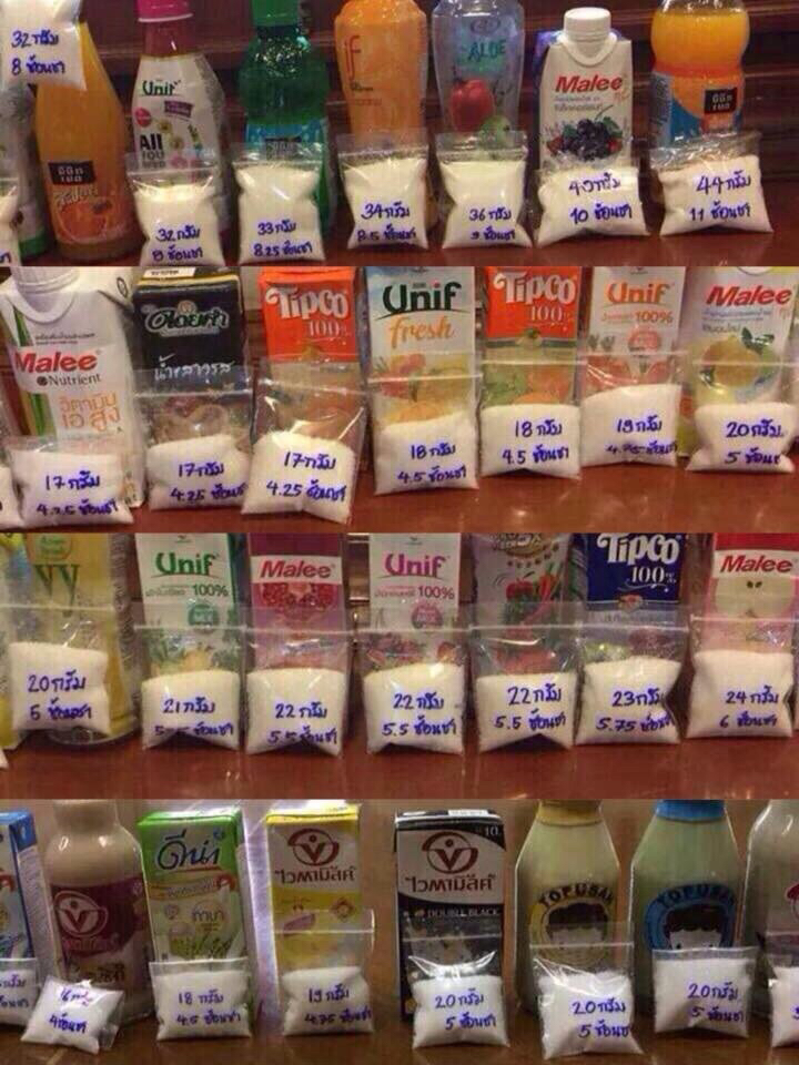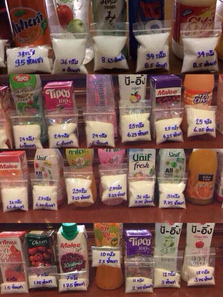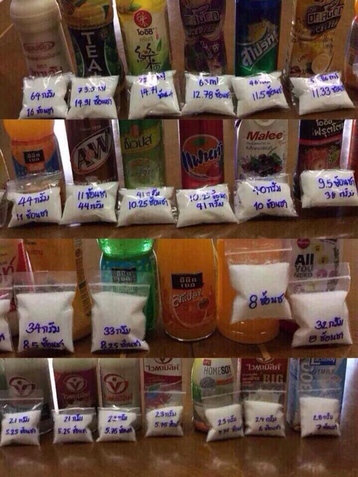 ทุกวันนี้นอกจากอาหารที่ใส่น้ำตาลหวานๆแล้ว เครื่องดื่มนี่ก็ถือเป็นตัวการสำคัญที่ทำให้คนเราบริโภคน้ำตาลมากเกินความจำเป็นด้วยค่ะ ส่งผลให้ปัจจุบันนี้คนเจ็บป่วยกันง่ายขึ้น มาดูกันค่ะว่าน้ำตาลในเครื่องดื่มแต่ละชนิดมีมากน้อยเพียงใด