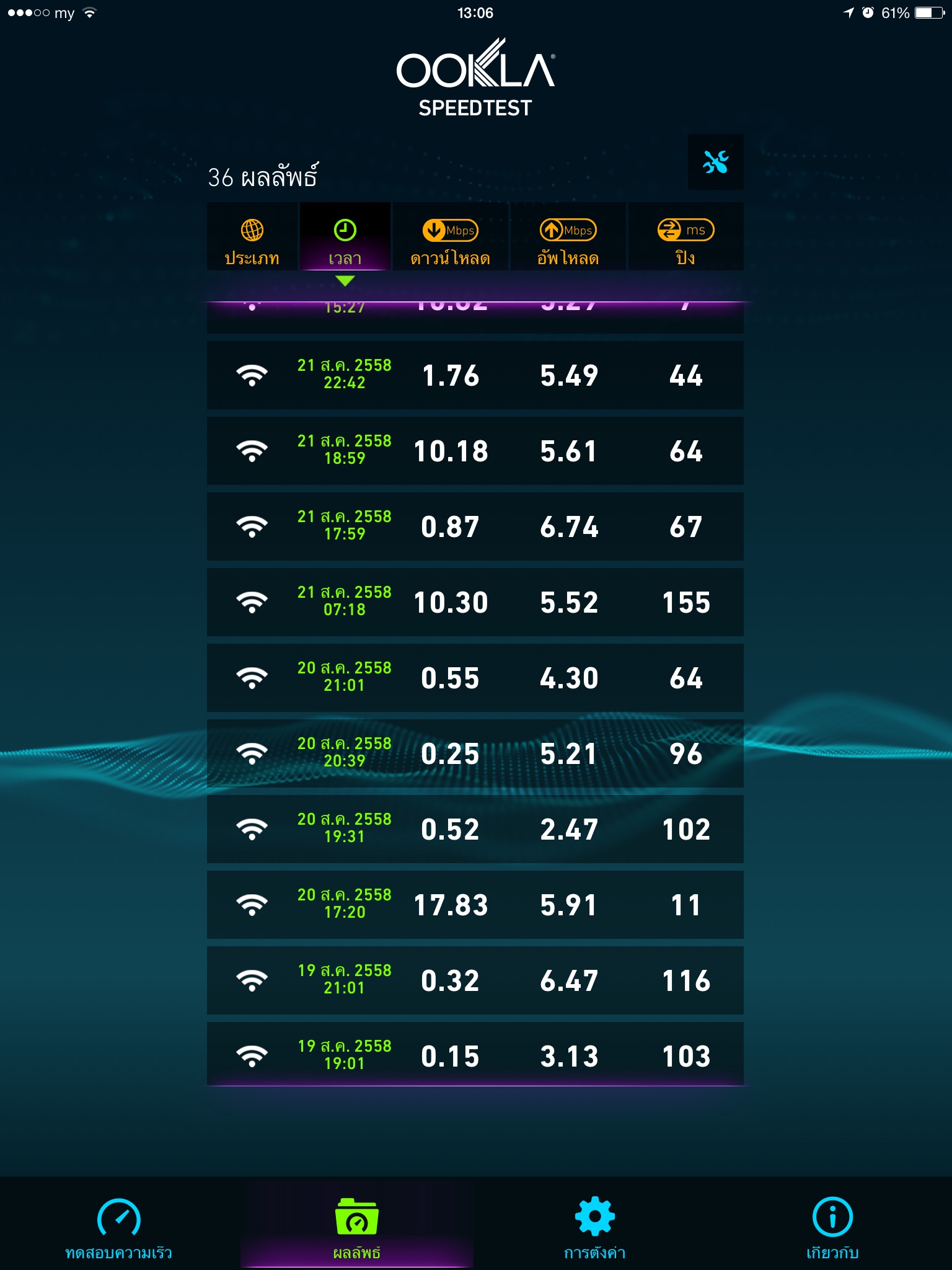 เลยโทรไป 1742 ใหม่ได้คำตอบเหมือนเดิมครับ เดี๋ยวแจ้งวิศวกรให้ครับ แล้วก็ อ้อคงเป็นช่วง peaktime แหละครับ ทีนี้ผมเลยสวนกับเลยครับ มันก็ไม่น่าจะน้อยกว่า 1 เมกนะครับ ผมโทรแจ้งประมาณ 4 ครั้งครับได้คำตอบว่าให้รีเน็ต ตลอดที่นี้ผมไม่ต้องโทรหาและผมรีเองเลยแต่มันก็เหมือนเดิม ผมว่ามันเป็นไปไม่ได้ที่ช่วง download ตกแต่ upload กลับไม่มีผล แล้วผมก็ไม่มีโน็ตบุ้คลองต่อสายตรงเลย ใช้แต่ wifi อย่างเดียว ขอร้องแหละครับส่งคนมาดูหน่อยน่ะครับ ตอนมาติดตั้งรีบมาเลยแหละครับ แล้วก็ไม่ต้องหลังไมค์มาให้ผมส่งลิ้งค์ไปน่ะครับคุณอ่านในกระทู้เลย