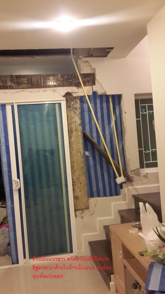 ตอนนี้สภาพบ้านอยู่ไม่ได้เลย ทุบด้านหน้าหมด กลัวว่าจะหาสาเหตุจริงไม่เจอ จะยิ่งไปกันใหญ่ค่ะ