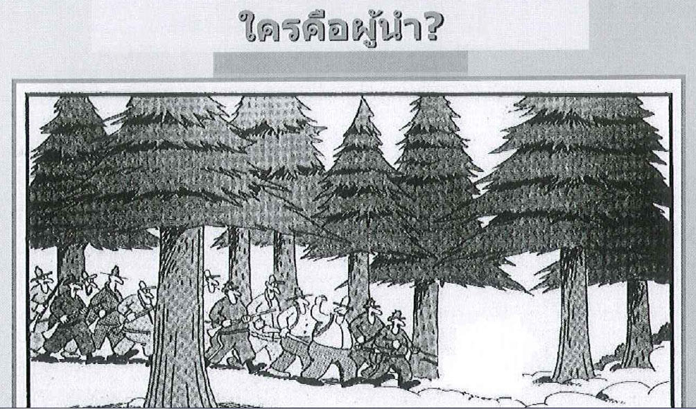 จากภาพ วิทยากร ตั้งคำถามให้คนเข้าอบรมตอบว่า ใครคือผู้นำ ก็ตอบกันไปว่าคนที่อยู่หน้าสุดบ้าง คนนั้นบ้าง คนนี้บ้าง มีอยู่คนตอบว่า ไม่สามารถระบุได้