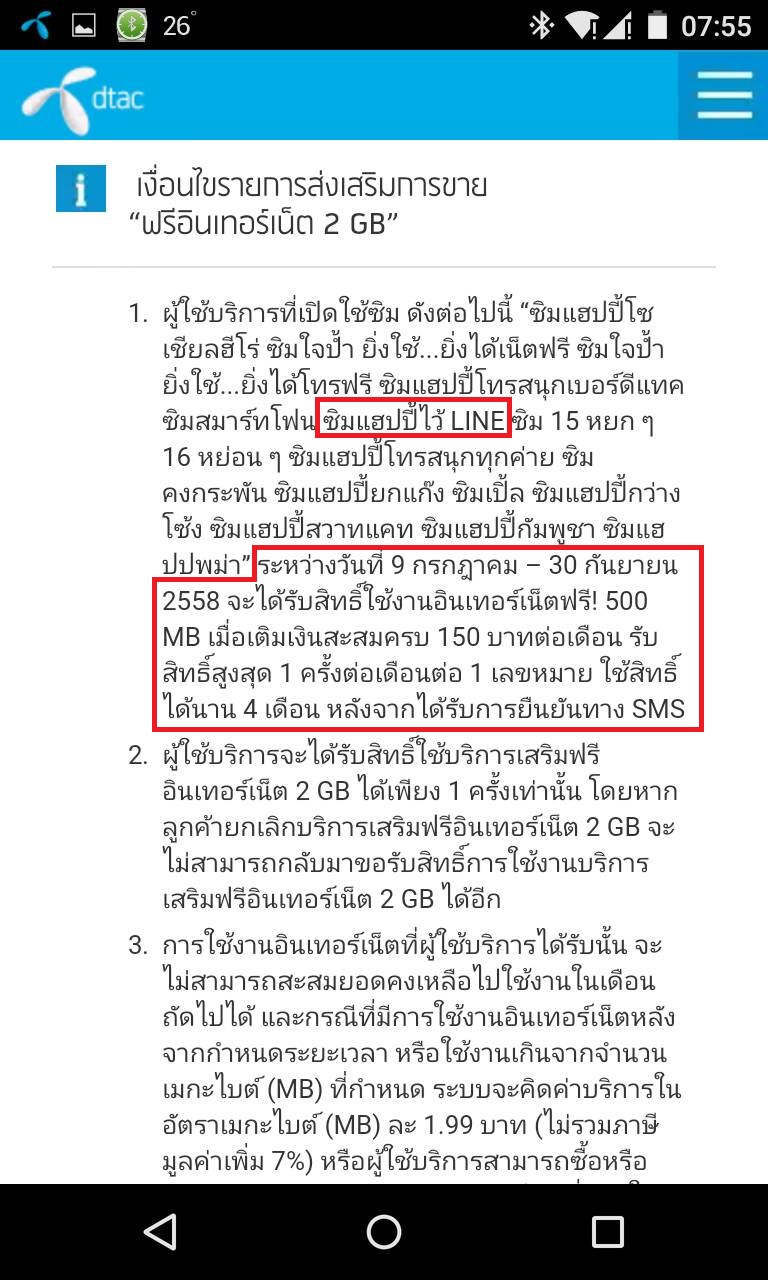 และได้พบโฆษณาของ DTAC ผ่านทางเวปไซต์ว่า "ซื้อซิมแฮปปี้วันนี้เล่นเน็ตฟรี 2GB" ผมก็สนใจโปรโมชั่นดังกล่าวรายละเอียดตามรูปภาพด้านล่างครับ