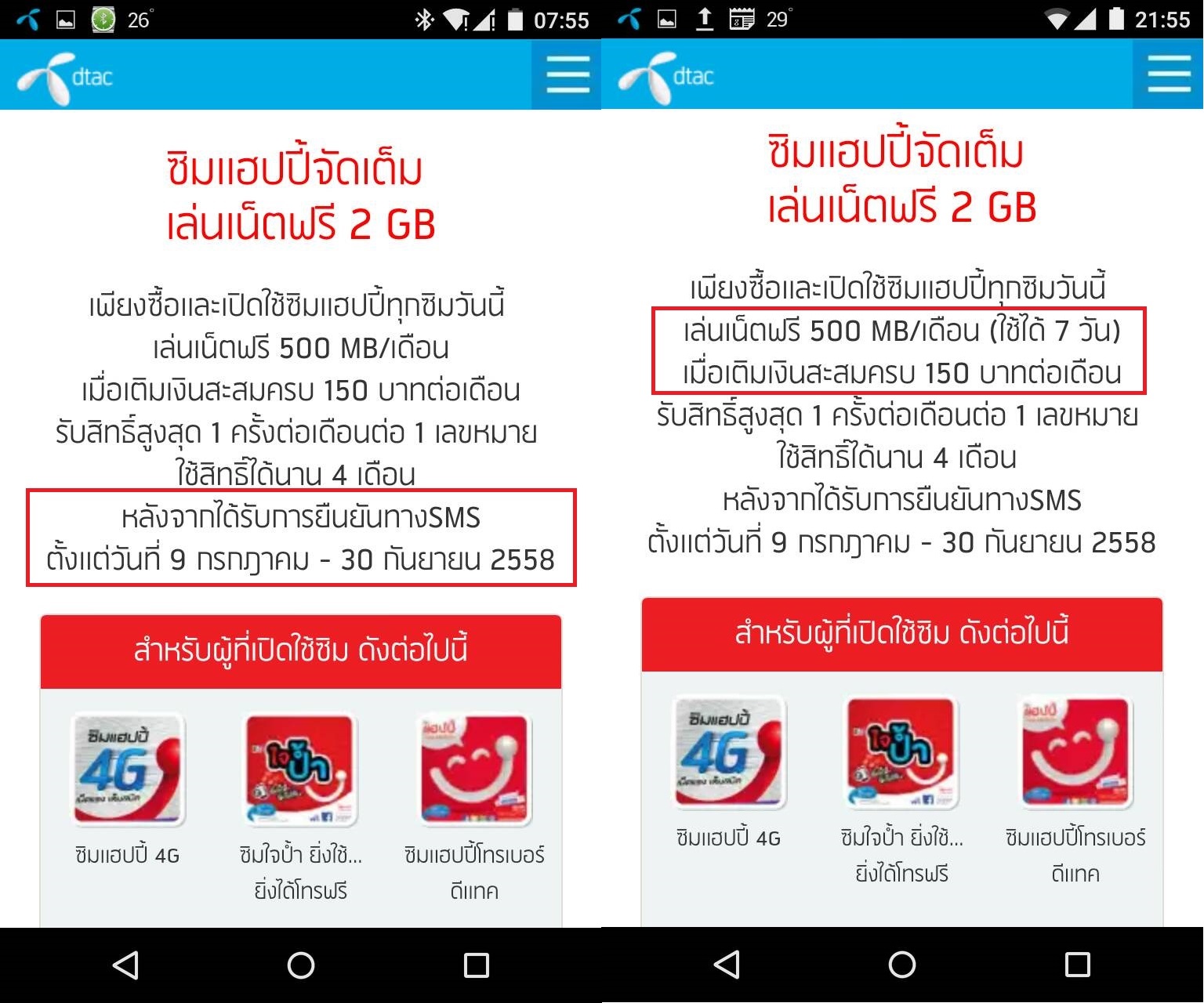 ภาพซ้าย 500MB/เดือนผมเซฟภาพนี้เมื่อวันที่ 3 กันยายน และวันนี้ 4 กันยายนได้มีการแก้ไขเป็น 500MB ใช้ได้แค่ 7 วันเท่านั้น