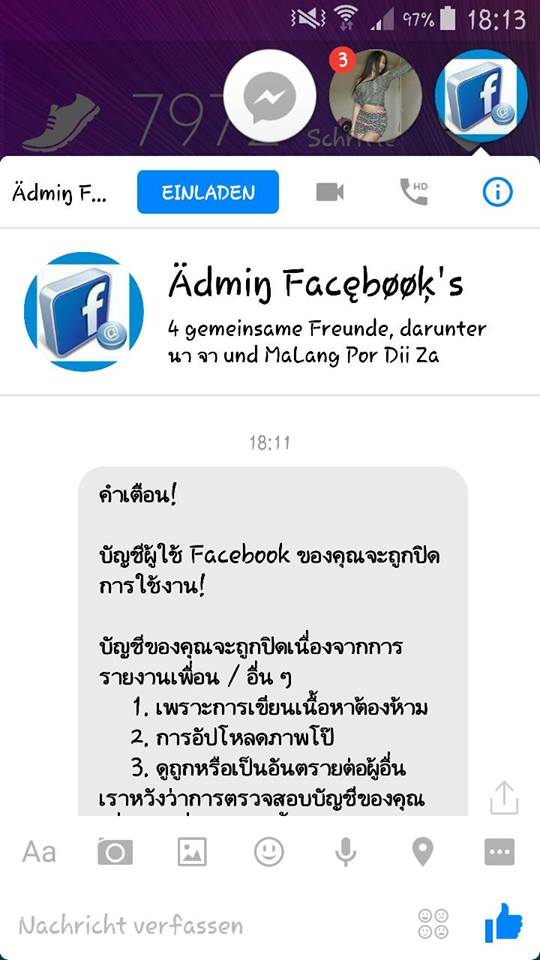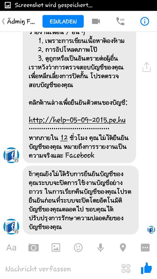 เรื่องของเรื่องคือ มีคนส่งข้อความมาหาแฟนของเราว่า บัญชีผู้ใช้ Facebook ของคุณจะถูกปิดการใช้งาน!