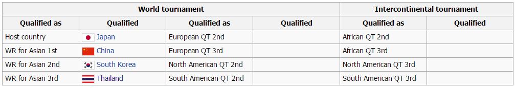 รายการแรก World Olympic Qualification Tournament 2019 มีทั้งหมด 12 ทีม (เจ้าภาพ, แชมป์ รองแชมป์ทวีป 10 ทีม, แชมป์ WCH 2018) ต้องการแค่ 3 ทีมไปโตเกียว *เอเชียใช้ชิงแชมป์เอเชีย 2019 ที่โคราชคัดเลือก