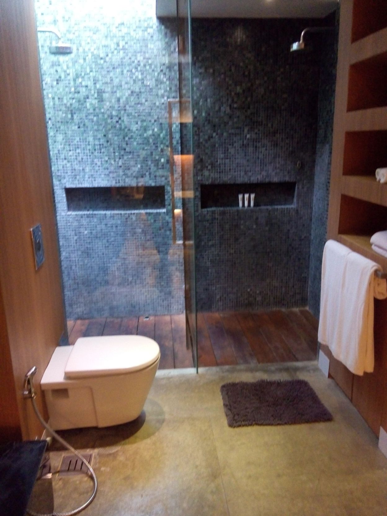 ห้องน้ำมีของใช้ที่จำเป็นให้ บางอย่างไม่มีสามารถโทรขอได้เลยครับ ห้องอาบน้ำมี indoor และ outdoor ครับ แต่เสียดายในห้องไม่มีอ่างอาบน้ำเลยอดแช่น้ำอุ่นเลย
