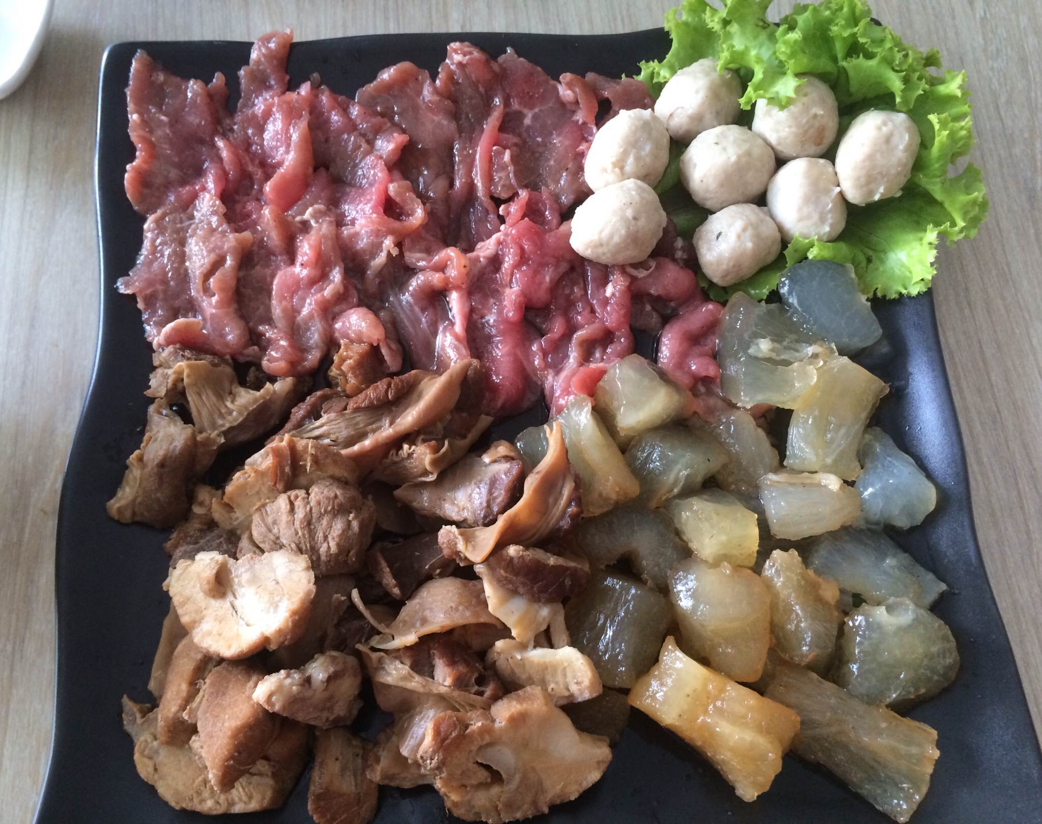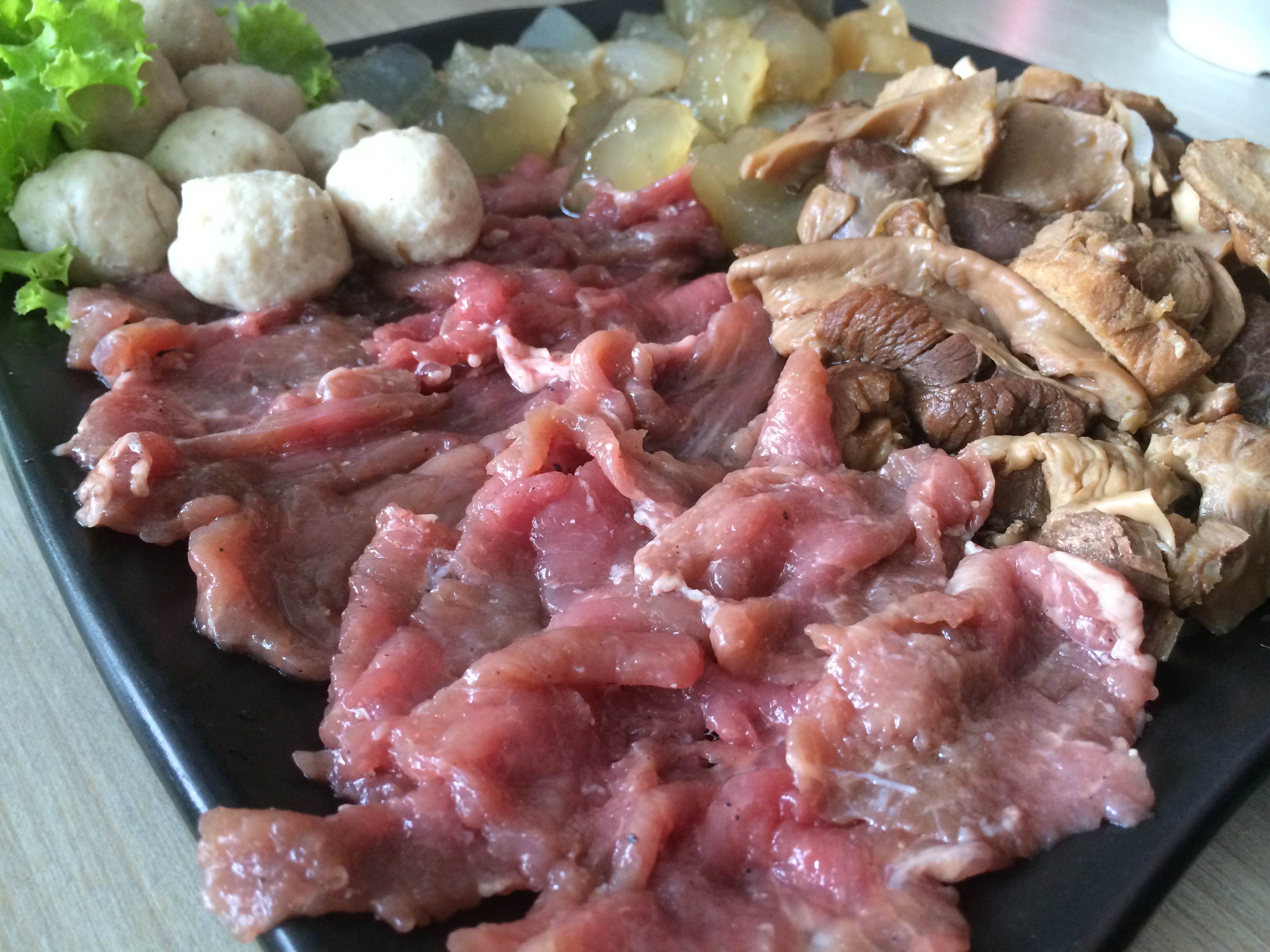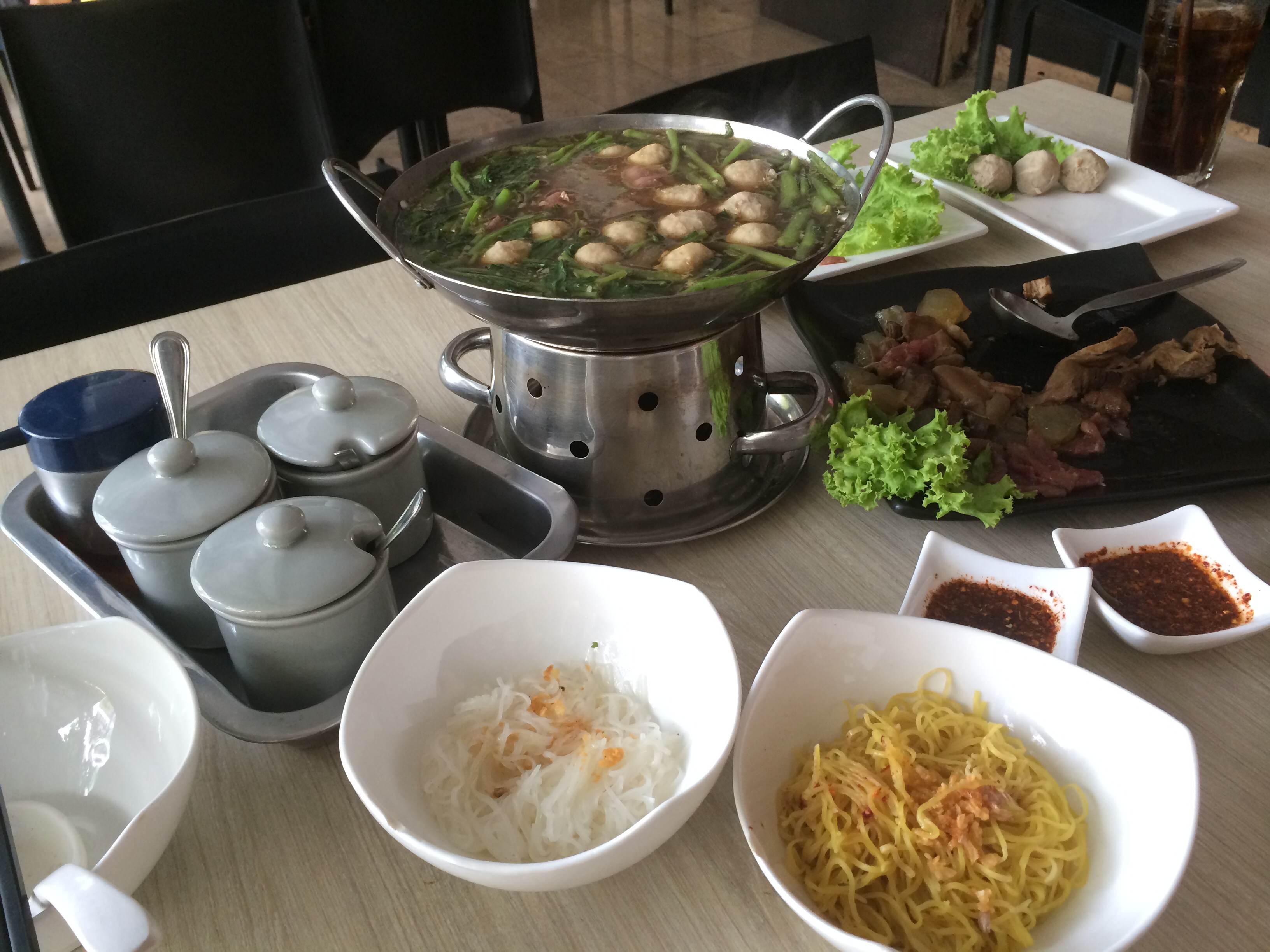 จัดเต็มแค่นั้นยังไม่พอค่ะ เราต้องมีอะไรมาเพิ่มนั่นก็คือ สั่งลูกชิ้นเอ็นเนื้อ , เนื้อหมูสด แล้วก็บะหมี่กับเส้นเล็ก โฮ้ะโฮ้ะะะ ถึงเวลาในการชิมสิ่งที่น่ากินที่อยู่ข้างหน้าเราแล้วค่าาาา
