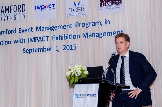 การจัดทำหลักสูตร Event Management ภาษาอังกฤษ นับเป็นหลักสูตรการสอนที่มีประโยชน์อย่างยิ่งสำหรับการสร้างขีดความสามารถของบุคลากรในอุตสาหกรรมไมซ์ และนับเป็นนิมิตหมายอันดียิ่งที่ บริษัท อิมแพ็ค เอ็กซิบิชั่น แมเนจเม้นท์ จำกัด ได้เข้ามามีส่วนร่วมในการพัฒนาหลักสูตร Event Management โดยร่วมมือกับสถาบันการศึกษาระดับนานาชาติอย่างมหาวิทยาลัยนานาชาติแสตมฟอร์ดที่โดดเด่นในด้านการศึกษาและภาษาอังกฤษ ซึ่งจะเป็นส่วนช่วยให้ประเทศไทยสามารถผลิตบัณฑิตคุณภาพด้านไมซ์ที่มีความสามารถด้านภาษาได้เป็นจำนวนมาก”