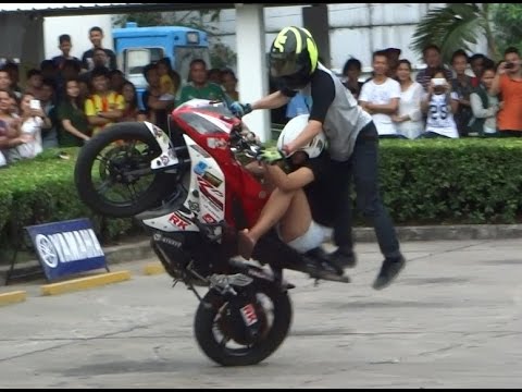 พาสาวซ้อนหน้ายกล้อโชว์ขั้นเทพ โดยทีมงานสตั๊นท์แมนโชว์ค่ายยามมา5 YAMAHA R15