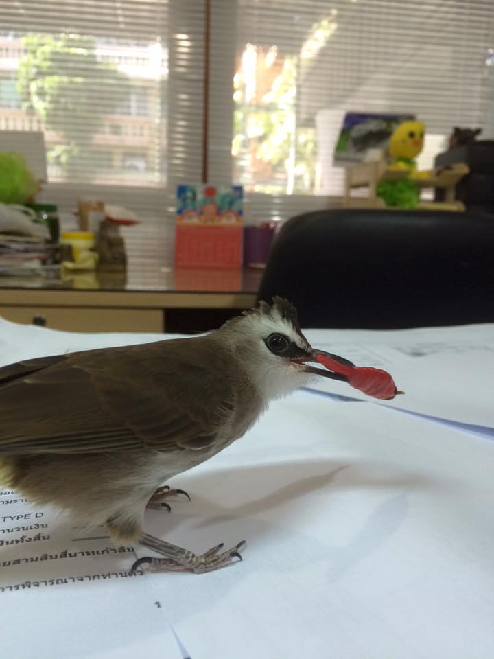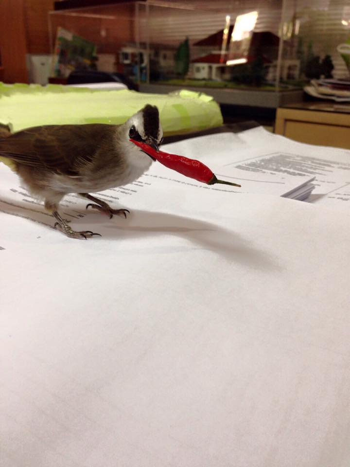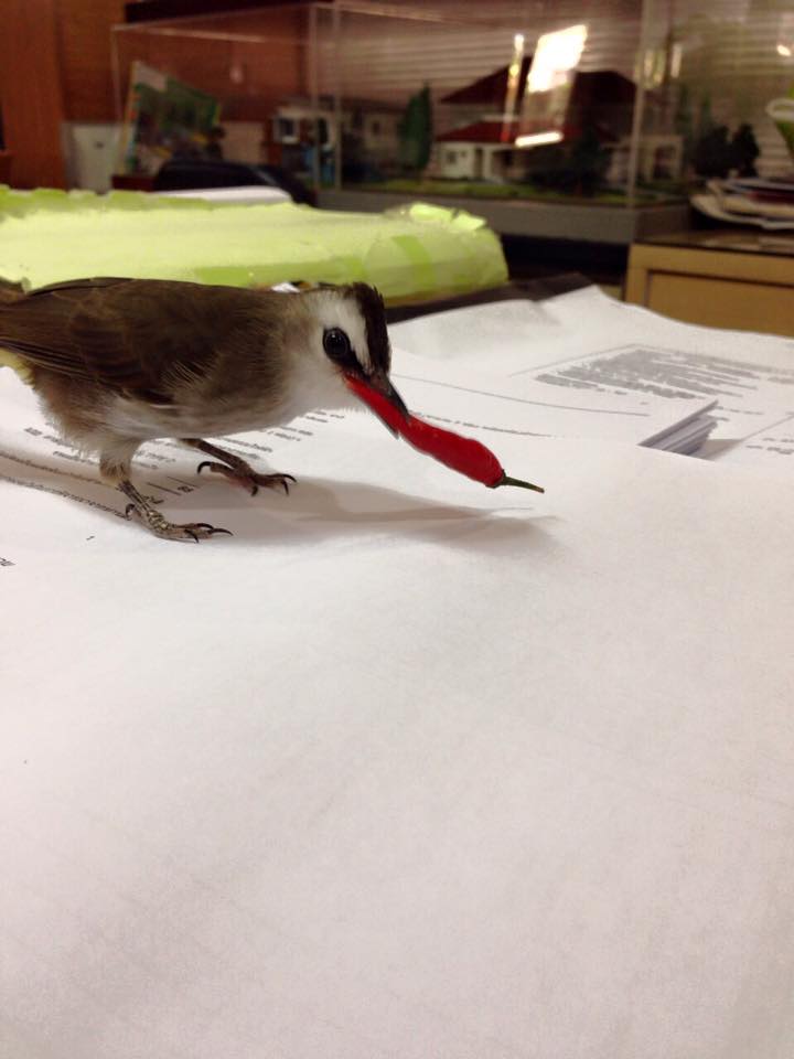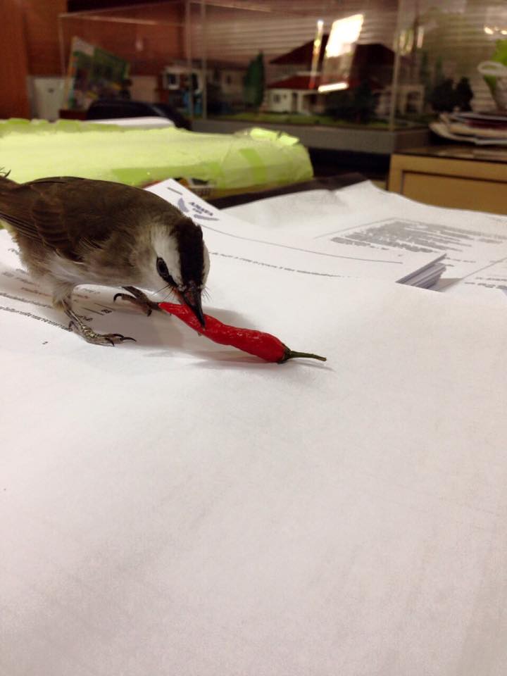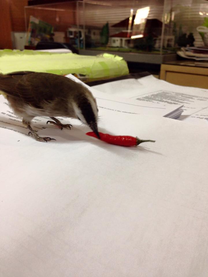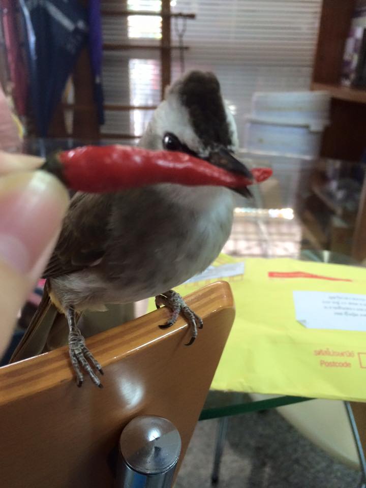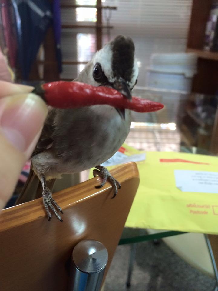 นกน้อยเบอร์ดี้ กำลังจะคาบพริกหนีค่ะ