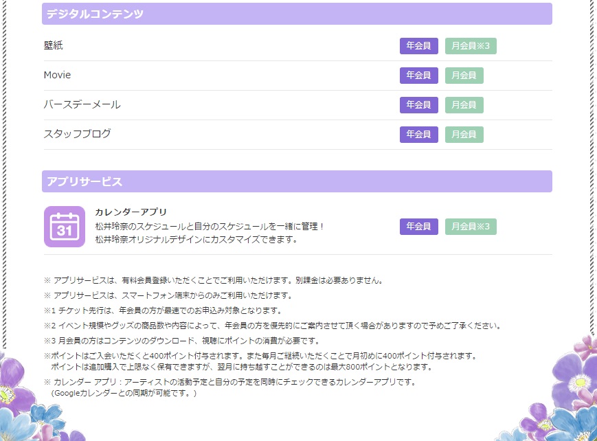 *3 สมาชิกรายเดือนจำเป็นต้องใช้แต้มในการดาวน์โหลด, ดู / ฟัง มีเดียต่าง ๆ