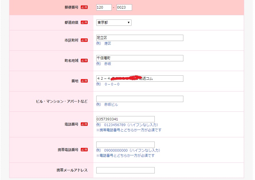 Street Address: 千住曙町42-4 TS****** (หมายเลขประจำตัว) 転送コム