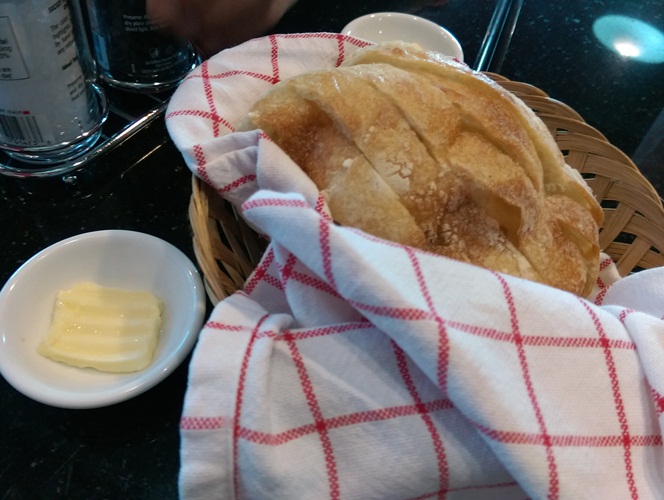 สั่งเสร็จแล้วก็มีขนมปังอุ่นๆ มาเสริฟ ขนมปังที่นี่จะเป็นแบบนุ่มหนึบค่ะ แปลกดี อร่อยอยากกินอีก แต่ตะกร้าละ 60 บาท ไว้คราวหน้าแล้วกันนะ