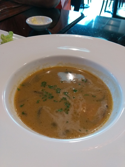 ซุปล็อบสเตอร์ : LOBSTER BISQUE เมนูนี้เห็นใน FB ร้าน ตอนแรกหาในเมนูไม่เจอก็เลยยังไม่ได้สั่ง มาเห็นทีหลังว่าเขียนอยู่บนเสา