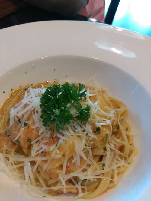 PASTA SEAFOOD LOBSTER SAUCE - จานนี้ประทับใจทั้งซอส ทั้งชีส รสเข้มข้น และรู้สึกว่ากินแล้วได้รสชาติของทะเลเบาๆ(ว่าไปนั่น) เส้นลวกมาได้หนึบกำลังดีมากๆ กุ้งก็เนื้อแน่นหนึบดี ปลาหมึกแม่บ่นว่าเนื้อบางแต่เราไม่ได้ชิมค่ะ
