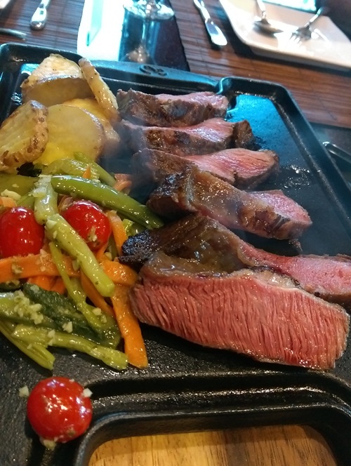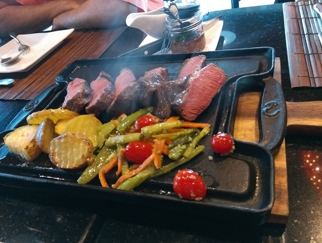 เสริฟมาในจานร้อน เนื้อมันนุ่มมาก ซึ่งเขาบอกว่าเนื้อร้านนี้ใช้วิธี “ซูวี” (Sous Vide) จึงทำให้นุ่มแบบนี้ค่ะ ใครสงสัยว่าวิธีนี้เป็นยังไง เราไม่รู้ค่ะ รู้แต่ว่าอร่อย!!!