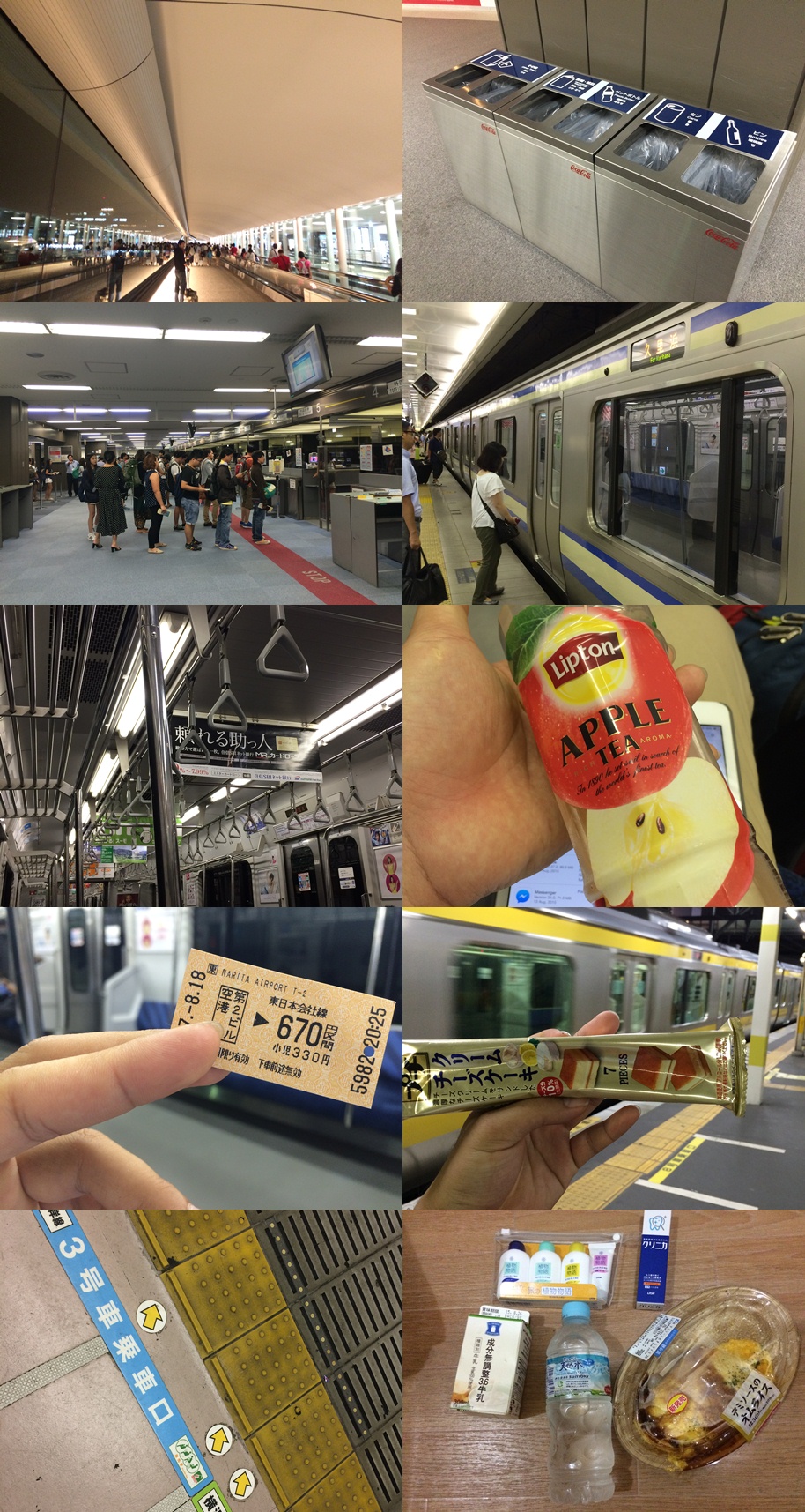 การเดินทางออกจากสนามบิน หลายคนคงแพลนมาแล้ว สำหรับผมใช้รถไฟ ผมพักที่สถานี้ Ishikawacho ใน Yokohama รู้แต่สถานนี้ ก็เดินมาเลื่อย ๆ จนเห็นเคาร์เตอร์ ขายบัตรของ JR เลยถามเขาดูว่าไปซื้อที่ไหนยังไง สรุปคุยกันไม่รู้เรื่อง เลยเดินลงตามป้าย ที่เขียนว่า Narita airport terminal 2 มีรูปรถไฟประมาณนี้ ถ้าไม่รู้ก็ถามพนักงาน แถวนั้นเลย ใช้ภาษาอังกฤษแหละถาม มั่นใจภาษาตัวเองหน่อย มันจะมีรถไฟ สองแบบมั้ง มีแบบ JR กับอะไรสักอย่าง