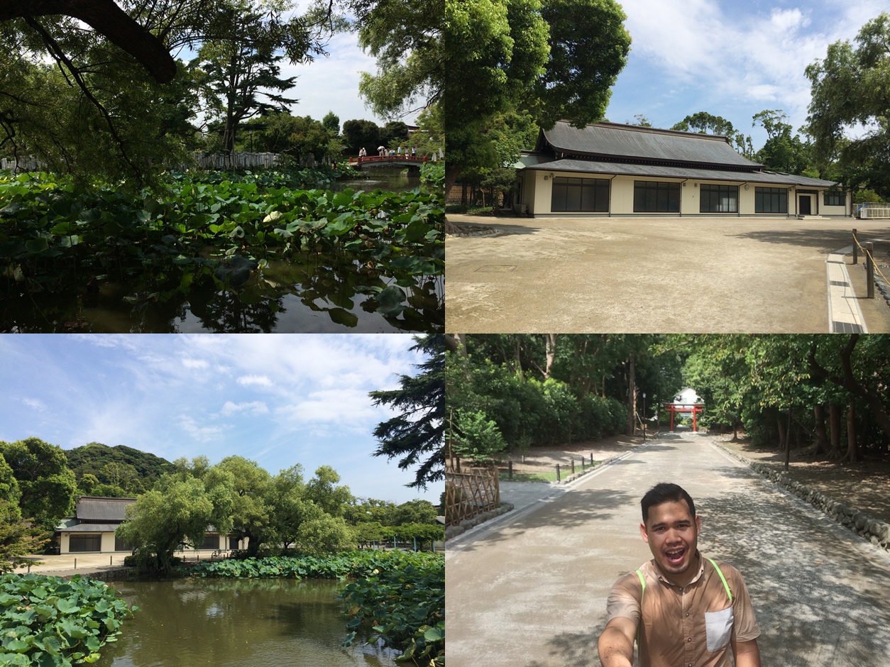 ชื่ออ่านยาก จำไม่ได้หรอก เอาไกด์มาเปิดดูอีกที แบบว่าก่อนเข้าศาลเจ้าเข้าจะมี เป็นบ่อน้ำให้เราทำความสะอาดตัวเราก็เข้าวัดหรือศาลเจ้า ตามความเชื่อใช่ไหม ผมเห็นคนญี่ปุ่นทำ ผมก็ไปทำตาม เนื่องด้วยอากาศร้อนมากมาย น้ำเย็นดีจัง เอาล้างหน้าก่อน เลยเป็นไปได้อยากอาบส่ะตรงนี้ ล้างหน้าเสร็จ ล้างแขน ป่วนปาก สะอาดล่ะ มองหาที่จอดจักรยานก็ไม่มี ทำไงดี ไปจอดใว้ไหนเนีย กลัวเขาด่าเอาจอดไม่เป็นที่เป็นทาง อ่อนึกออกได้ มองไปเห็นข้าง ๆ มีห้องน้ำเล็ก ๆ แอบผมก็เอาจะจักรยานไปจอดใว้หน้าห้องน้ำนั่นแหละ ล็อกล้อเรียบร้อย เดินเข้าไปไหว้พระอย่างสบายใจ ทำไมต้องไปจอดหน้าห้องน้ำ ก็เพราะถ้า รปภ.หรือเจ้าที่จะมาเอารถเราไปเขาก็ต้องคิดว่าเราเข้าห้องน้ำอยู่แน่เลย คิดไปนู้น ขำตังเองน่ะบางที ก็มันหาที่จอดจักรยานไม่เจรออ่ะ ให้ทำไง ยืมวิธีนี้ไปใช้ได้น่ะ ถ้าใครไปเที่ยวเมืองนี้ ไหว้พระสมใจ จิตใจดี ที่วัดก็ไม่มีอะไรเป็นจุดเด่นมาก นอกจาก ถังต่าง ๆ ที่เรียงรายอยู่บนชั้นเยอะเยะไปหมด พอเข้าไปไกล้ ๆเลยนึกออกว่า น่าจะเป็นเหล้าที่คนในเมืองร่วมใจเอามาใว้ที่นี้ เวลามีงานก็จะนำออกมาแจกจ่าย ประมาณว่าเป็นเหล้ามงคลน่ะ ผมคิดว่า ไหว้พระแบบญี่ปุ่น ต้องใช้เหรียญ 5 เยน หรือ 50 เยนจะโชคดี ไม่รู้อ่านมาจากไหนจำไม่ได้อีก ตอนไหว้ก็ค้นหาใหญ่เลย อยากโชคดีไง บรรยายจนเหนื่อย ดีที่เราพอพิมพ์สำผัสได้ทำให้ง่ายต่อการพิมพ์ยาว ได้อย่างไม่ลำบาก เล่าต่อ ในวัดก็จะมีสวนเล็กต้นไม้เยอะมาก เป็นระเบียบเรียบร้อย ได้รับการบำรุงรักษาอย่างดี ตามรูปน่ะ