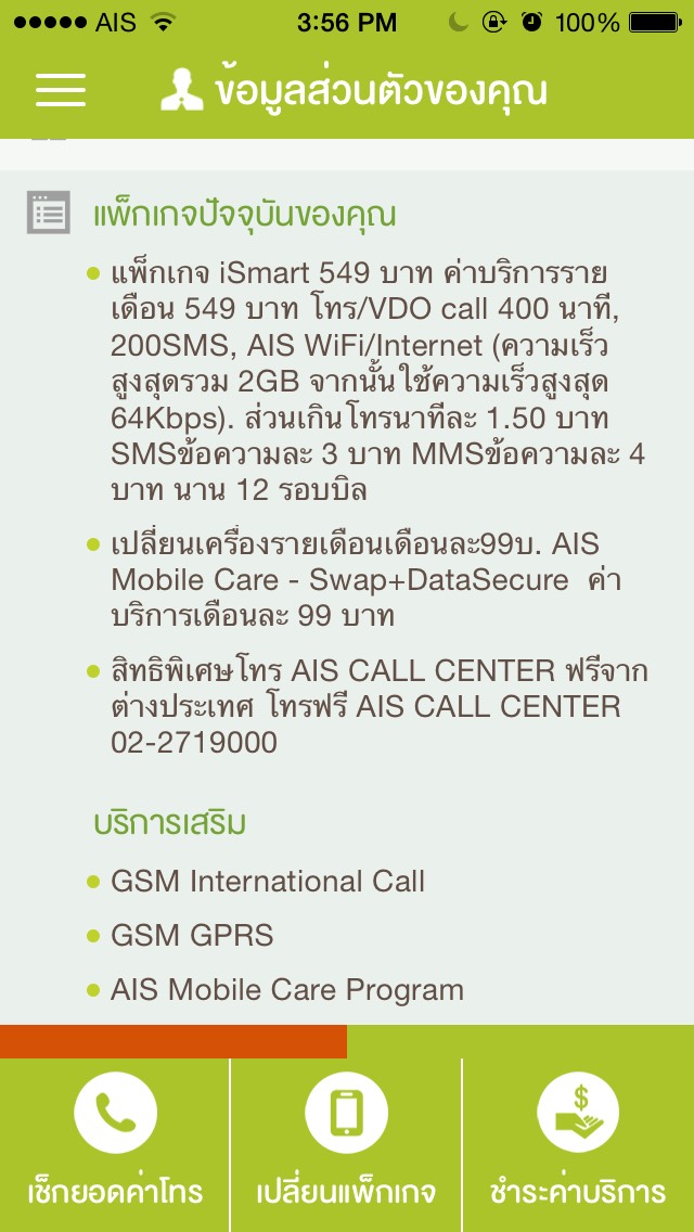 สอบถามเรื่องแพคเกจอินเตอร์เน็ต AIS