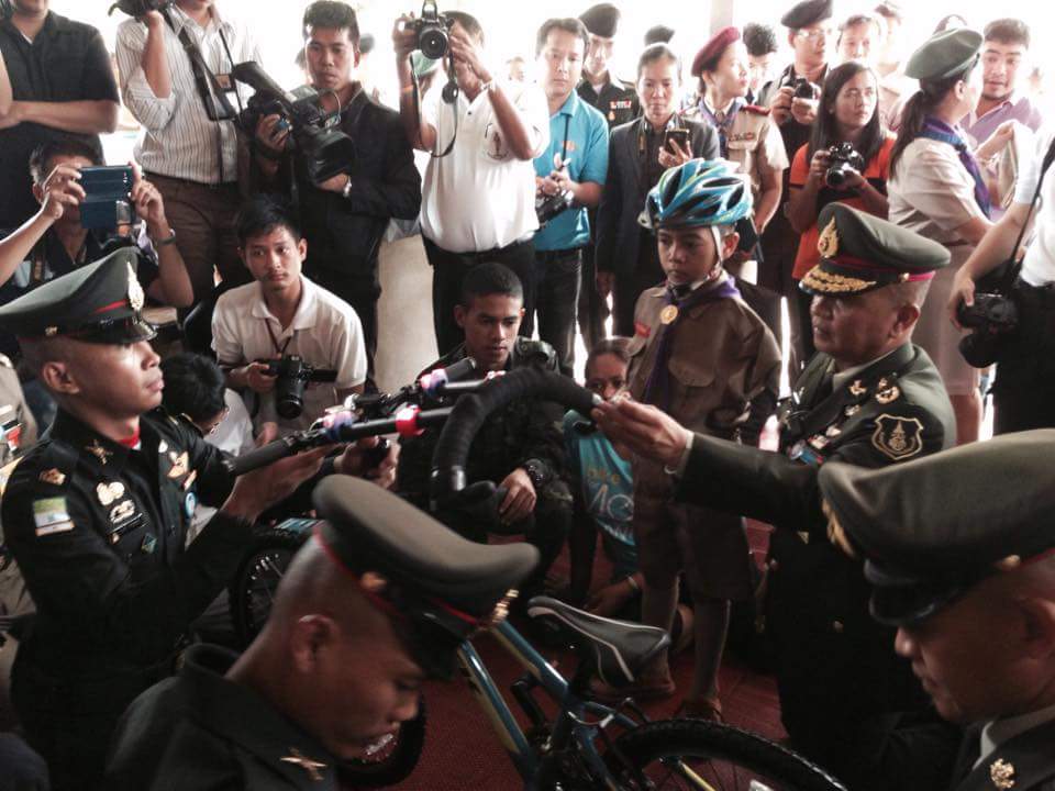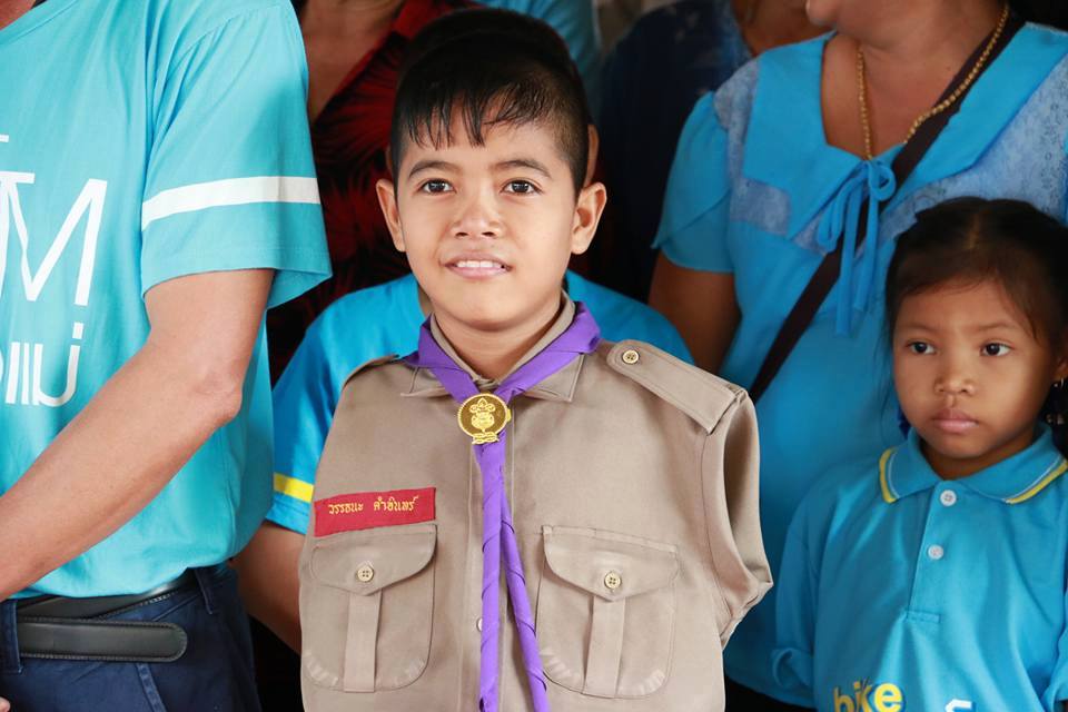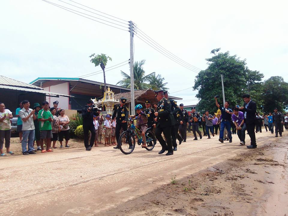 แต่น้องและคุณพ่อ ก็ฝึกจน น้องทาม ขี่จักรยานด้วยศรีษะ และสามารถ นำไปโรงเรียนได้โดยไม่ต้องเป็นภาระพ่อแม่ไปส่ง