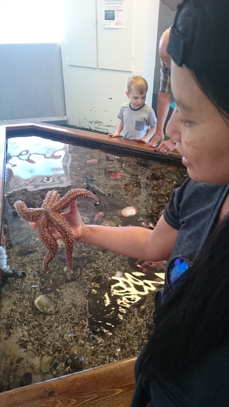 พิภิธภันฑ์สัตว์น้ำ เราชอบดำน้ำอยู่แล้วก็เลยเพลินกับที่นี่ไม่ใหญ่มากนัก ข้างในก็เป็นแบบตู้ปลา สวยไปอีกแบบ เพลินดีคะ ก่อนที่จะออกระหว่างทางเดิน จะมีบ่อให้เราสามารถจับปลาดาวได้ ฟินตรงนี้
