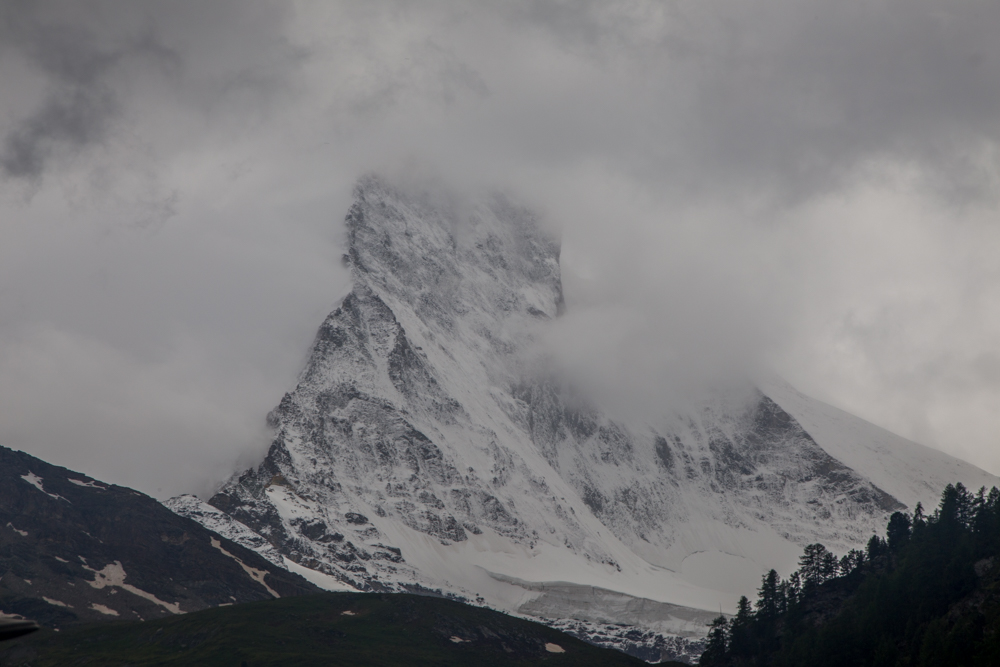 วันต่อมาผมก็ได้เดินทางไปที่หมู่บ้าน Zermatt เพื่อจะเดินทางขึ้นไปชมยอดเขา Matterhorn และกว่าจะไปถึงที่หมู่บ้านนั้นได้ ต้องขับรถไปประมาณ 1ชั่วโมงครึ่ง เเละก็ต้องนั่งรถไฟต่อขึ้นไปอีก พอลงที่สถานีรถไฟ Zermatt ผมก็ได้เห็นป้าย "ยินดีต้อนรับ" ทำให้ผมรู้สึกคิดถึงบ้านขึ้นมาในทันที เเต่เพราะสภาพอากาศที่ไม่เป็นใจ หิมะตกเเละอุณหภูมิอยู่ที่ -2องศา(ฤดูร้อนน่ะครับ ช่วงที่ผมไป) ผมเลยตัดสินใจไม่เดินทางขึ้นไปข้างบนนั้น เลยได้เเค่เก็บรูปจากเลนส์ซูมอยู่ข้างล่าง เเต่สักวันผมจะมาที่นี่อีก เเละจะเก็บรูปสวยๆไว้ให้ได้