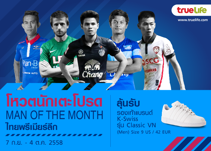 โหวตผ่าน SMS ไม่จำกัด จำนวนครั้ง (1 โหวต = 3 สิทธิ์) พิมพ์ H1 ธีราทร บุญมาทัน : บุรีรัมย์ ยูไนเต็ด