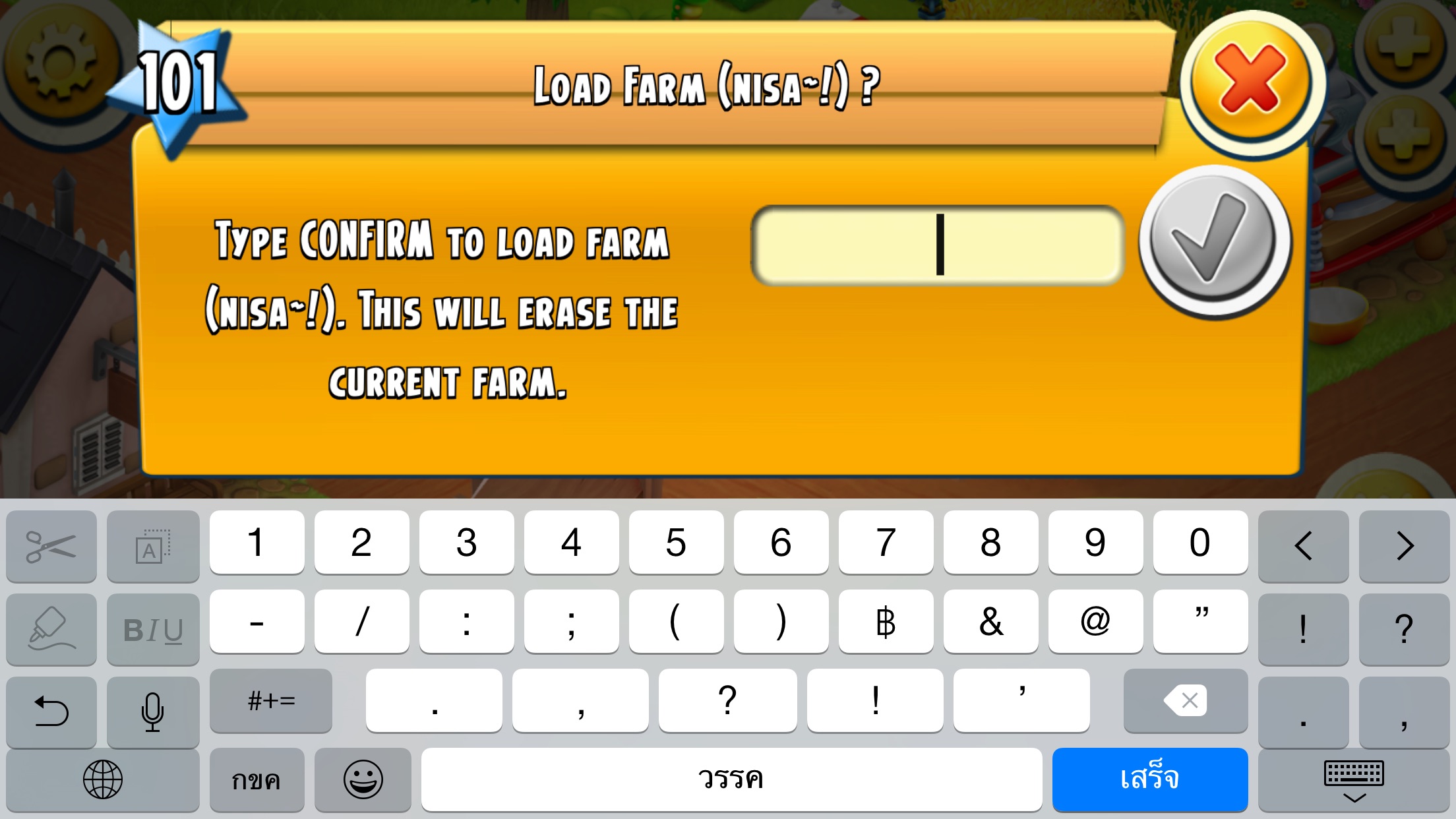 มันขึ้นว่าถ้าจะโหลดฟาร์มเก่า ให้ลบฟาร์มปัจจุบัน แล้วมันให้ใส่อะไรลงในช่องคะ ลองใส่ เมลล์ พาสเวิส ชื่อฟาร์ม ก้ไม่ได้