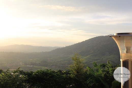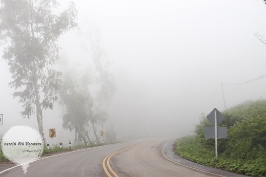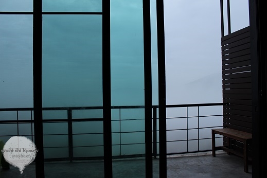 ตอนเช้ามืดค้า หนาวมาก ตื่นมามองออกไปตรงระเบียงไม่เห็นอะไรเลย หมอกมาเต็มมาก ฟุ้งกระจายเข้าห้องเลยทีเดียว