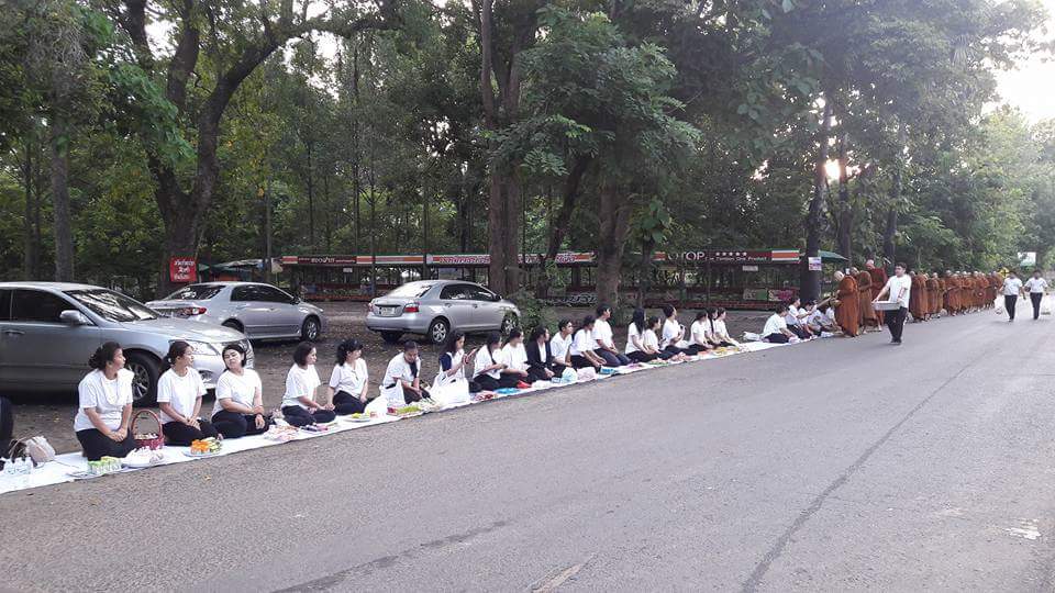 ในช่วงบ่ายของงานปฏิบัติธรรมอาจาริยบูชา พระโพธิญาณเถร(ชา สุภัทโท) วัดหนองป่าพง พ่อแม่ครูบาอาจารย์สายวัดหนองป่าพง เมตตานำญาติโยมเดินจงกรม แม้ฝนจะโปรยลงมาก็ตาม เพื่อปฏิบัติบูชาคุณหลวงปู่ชา สุภัทโท จะผ่า