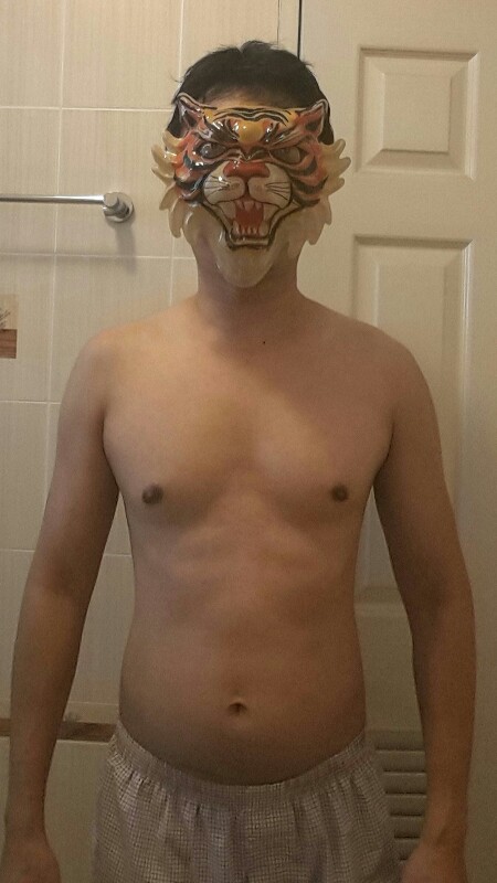 ผมสังเกตว่าอกสองข้างไม่เท่ากัน ด้านขวาจะดูป้านกว่าเล็กน้อย ผมน่าจะเป็นคนไหล่เอียงด้วย (สังเกตระดับหัวนม)