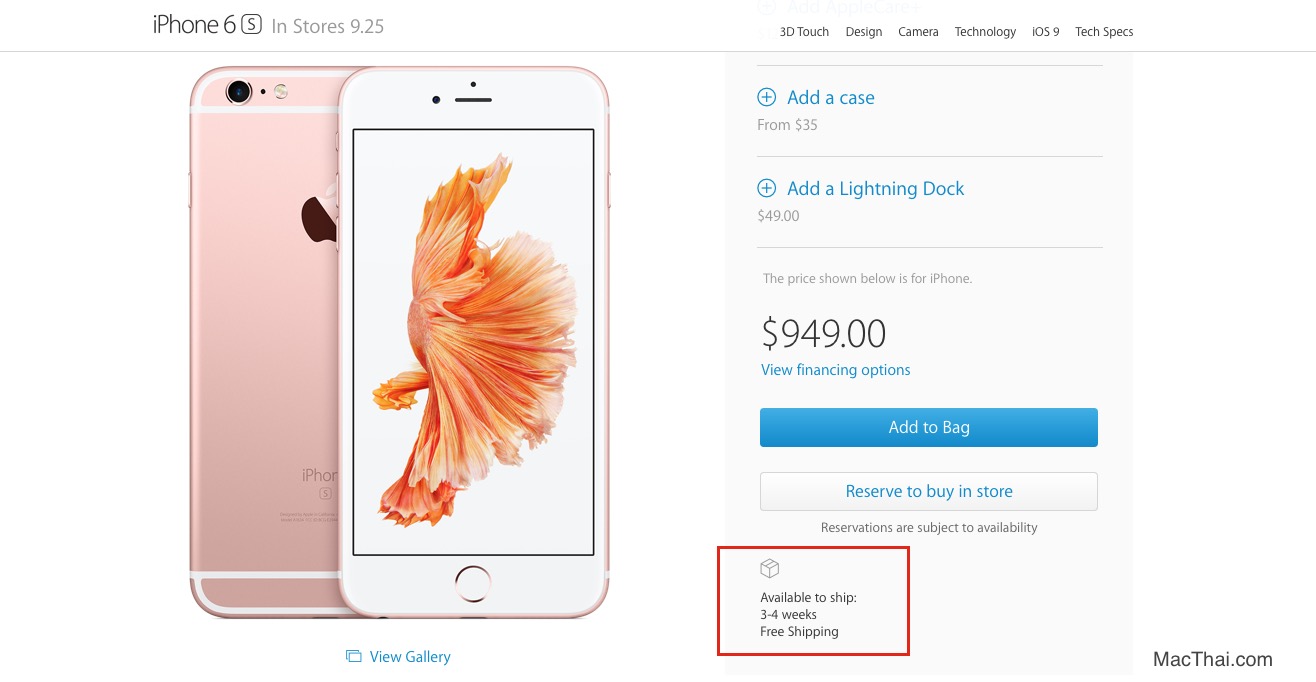 ในส่วนของ iPhone 6s หลายรุ่นก็เริ่มหมดแล้ว โดยเฉพาะสีชมพู ตอนนี้แทบทุก Store ทั่วโลกล็อตแรกถูกจองเต็ม จนต้องรอ 2-3 สัปดาห์ เช่นเดียวกัน