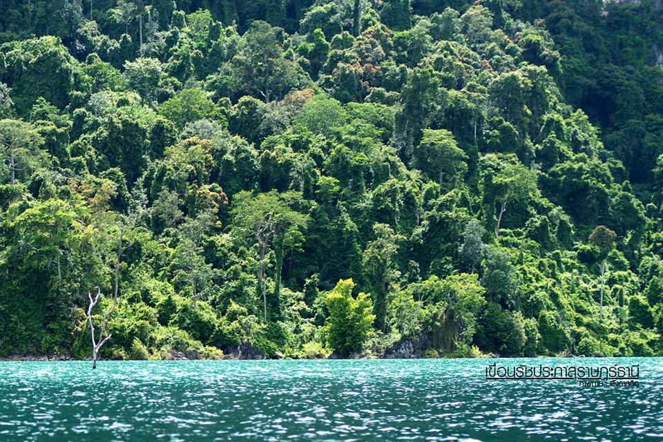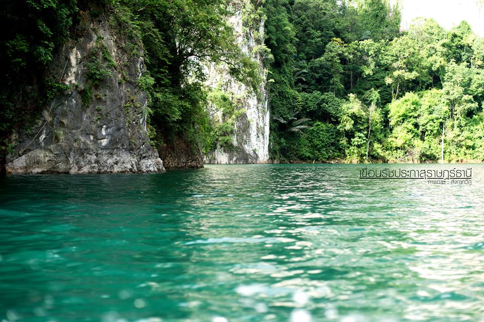 หัวหน้าผมเองครับ ข้างหลังหัวหน้าของผมก็คือ ที่เขาเรียกว่ากุ้ยหลินเมืองไทยอะครับ เป็นภูเขาหินปูนที่สูงชันล้อมรอบไปด้วยผืนน้ำที่กว้างใหญ่ ด้วยความลึกของระดับน้ำ กรอปกับสีของตะไคร้น้ำที่อยู่เบื้องล่างทำให้น้ำในเขื่อนมีสีเข้มเหมือนสีมรกต จนนักท่องเที่ยวหลายท่านคิดว่าเป็นน้ำทะเล ลักษณะภูมิประเทศไปคล้ายกับภูมิประเทศที่เมืองกุ้ยหลินประเทศจีน จึงได้ฉายาว่า กุ้ยหลินเมืองไทย