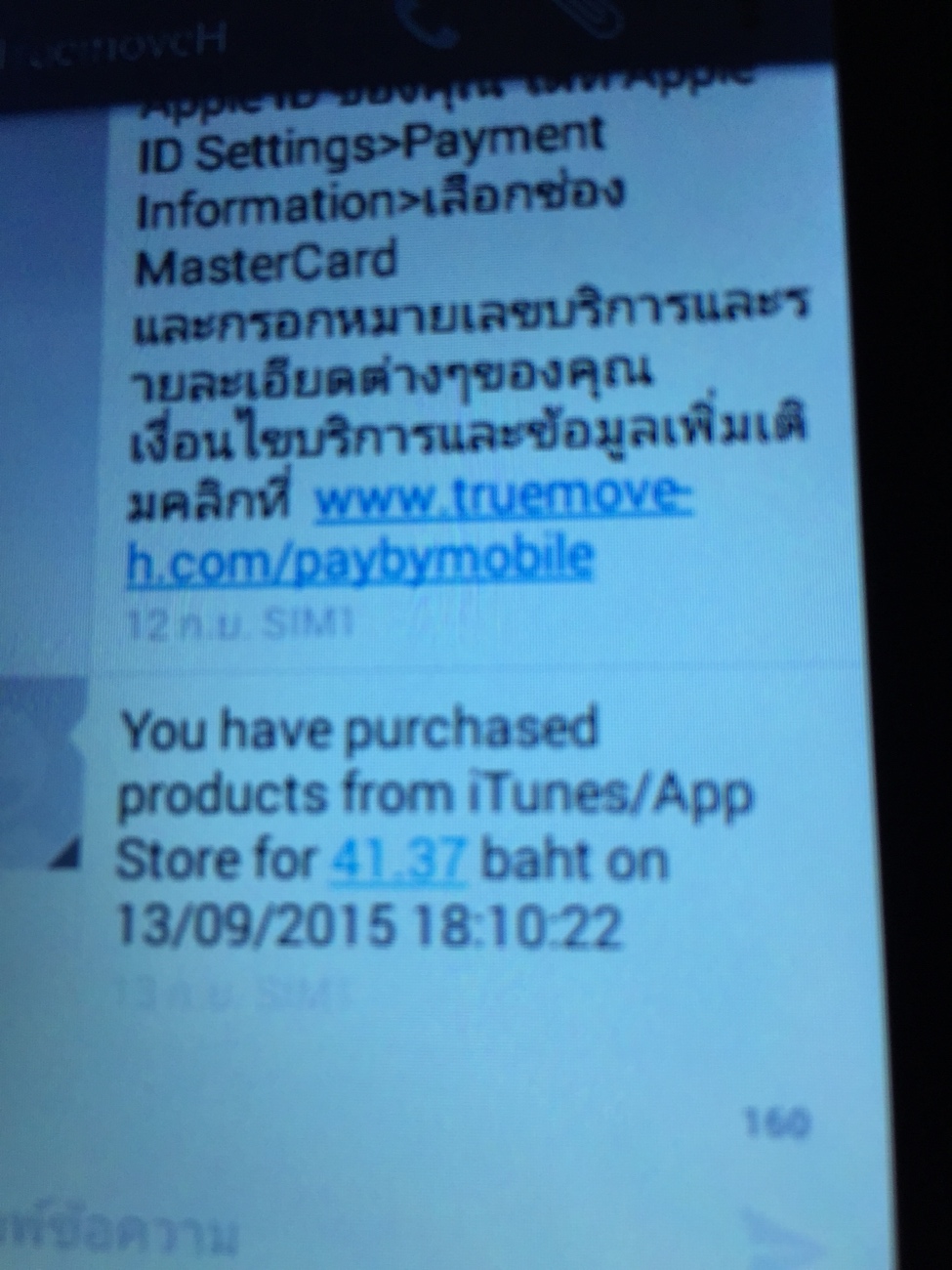ระวังบริการใช้เบอร์เติมเงินtruemoveH ซื้อapp ใน iphone ลองใช้บริการซื้อแอพผ่านบริการของtrue แทนบัตรเครดิต มีการหักเงินในเบอร์เติมเงิน แต่การหักเงินแต่ยอดการหักมันไม่ใช้ยอดที่ซื้อแต่เมื่อกับไปใส่บัตรเครดิตในการชำระเงินแบบเดิมกับโดนหักค่าซื้อ ในบัตรเครดิตแทน แล้วที่ทางtrue หักไปในยอด41.37บาทหักค่าอะไรทังที่appที่ซื้อมันตอนที่ใช้codeของtrueมันไปหักบัตรเครดิต