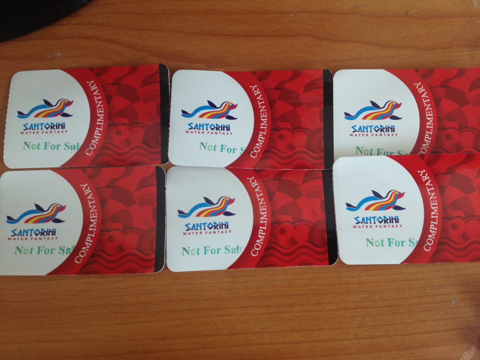 ายบัตรสวนน้ำ ซานโตรินี่ ราคาใบละ 400 บาท มีทั้งหมด 6 ใบ