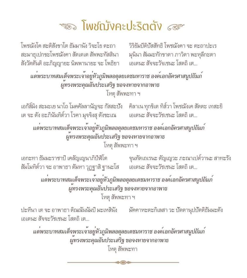 ขอพระองค์ทรงพระเกษมสำราญ พระวรกายสมบูรณ์แข็งแรง เป็นร่มโพธิ์ร่มไทรพสกนิกรชาวไทยตราบนานเท่านานเทอญ