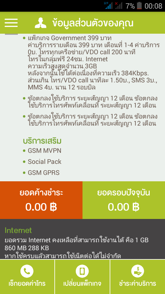 ผมใช้ Package 3G unlimited (ใช้ net ความเร็วสูงได้ 3GB และความเร็ว 64kb ไม่จำกัด) ด้วยความที่ใช้เน็ตเยอะ เลยจะสลับการใช้ไปมาระหว่าง 3G กับ 2G เพื่อประหยัดแบตและเก็บเน็ตความเร็วสูงไว้ใช้ตามที่จำเป็น