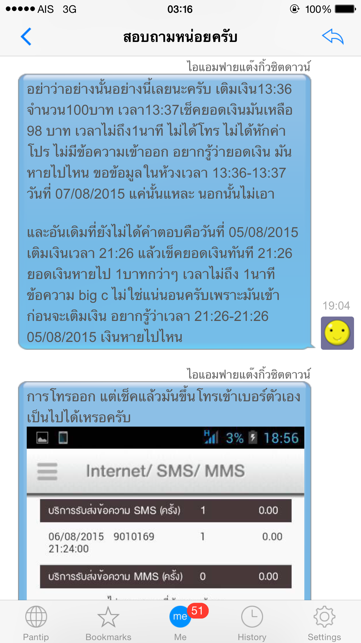 อันนี้ข้อความเมื่อเดือนก่อนที่มีปัญหาคุย ib กับ cc ห่างแค่1นาที เงินหายไปเลย เป็นไปได้ยังไง หักไปแบบมึนๆ