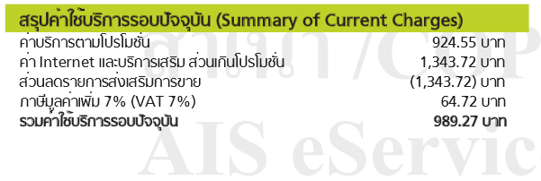 ปรากฏว่า ค่าบริการส่วนเกิน 1xxx กว่าบาท !!!!