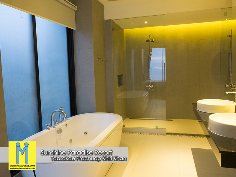 ห้องน้ำมี 2 Shower ใหญ่ๆเหมาะมากกับคนมีคู่ จากห้องน้ำสามารถมองผ่านเตียงนอน ผ่านสระว่ายน้ำ ผ่านทะเลไปสุดสายตา มีอ่างจากุซชี่ให้แช่สบายๆ ส่วนเครื่องอำนวยความสะดวกในห้องน้ำมีครบไปแค่ตัวยังอยู่แบบสบายๆครับ