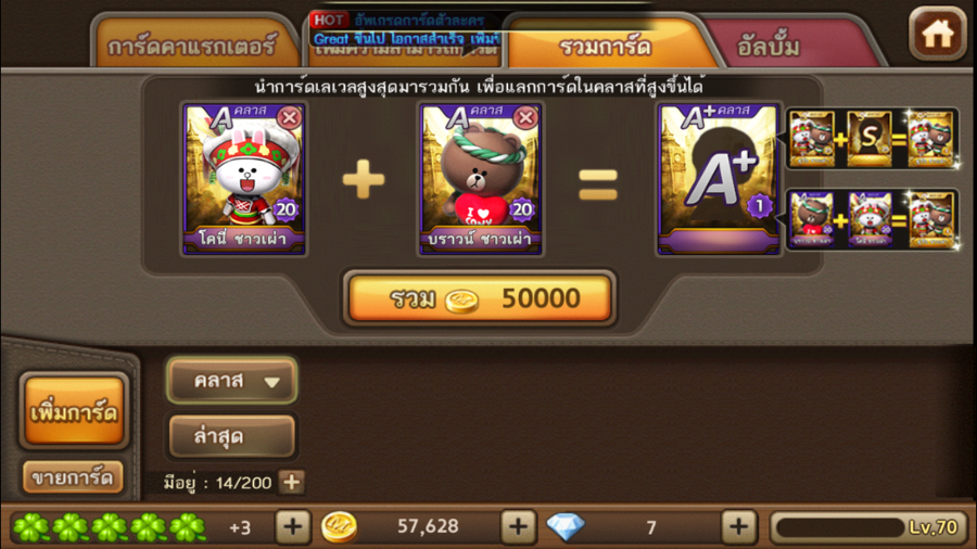 สอบถามเกี่ยวกับ การรวมการ์ด S Lv25 เป็นการ์ด S+ ครับ