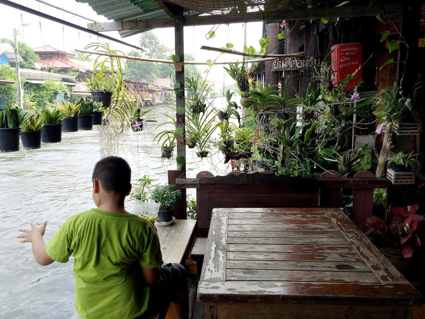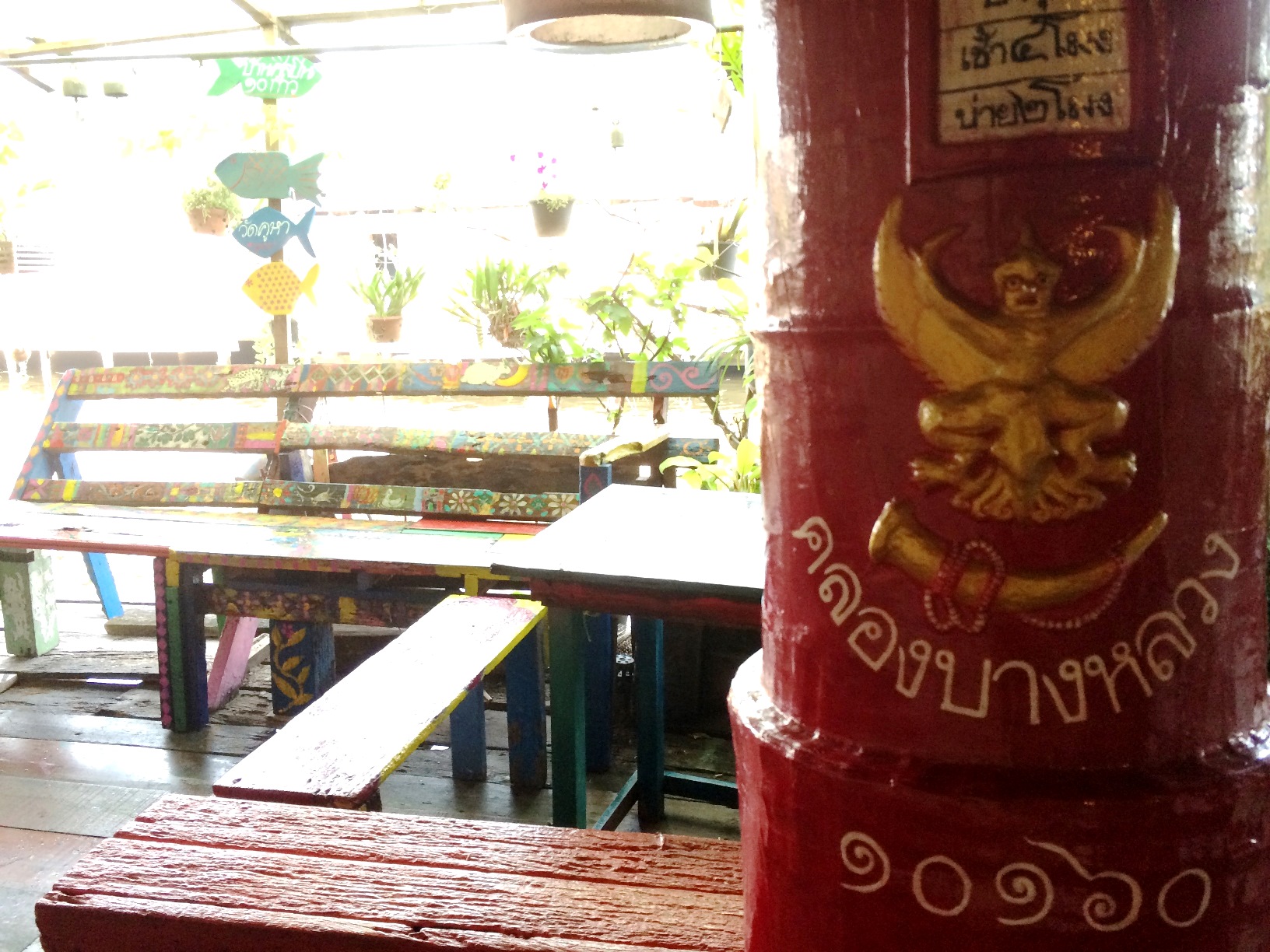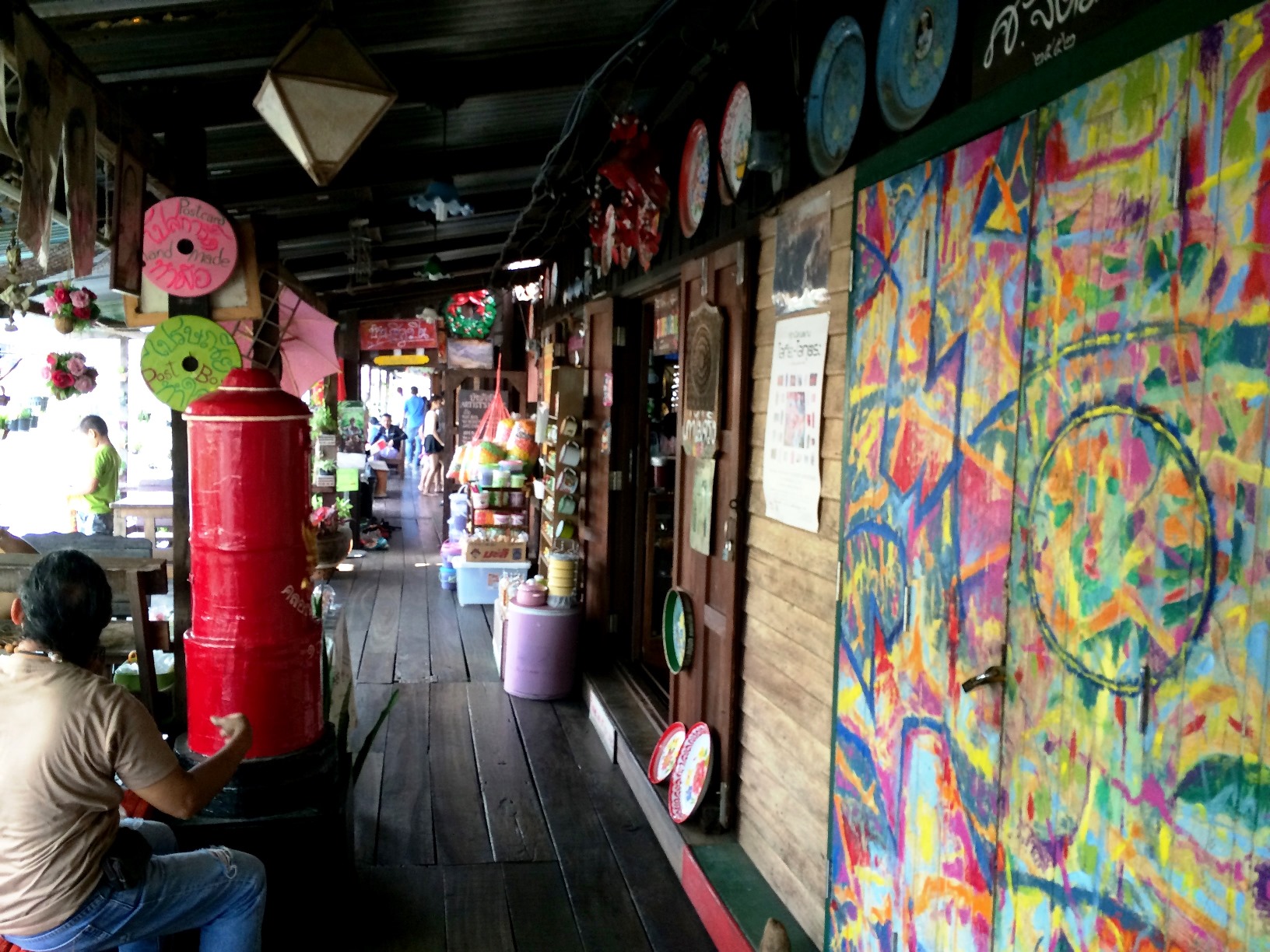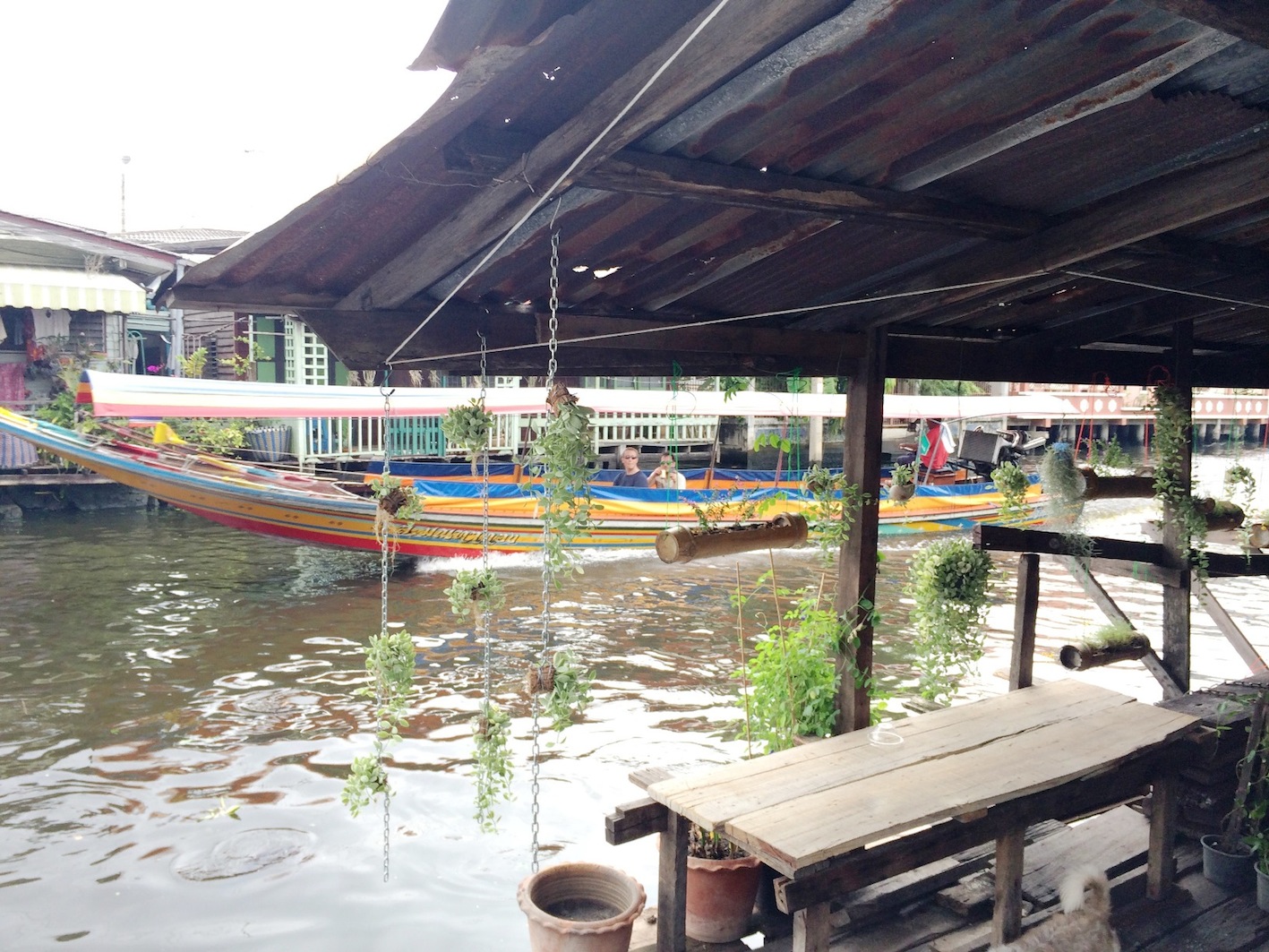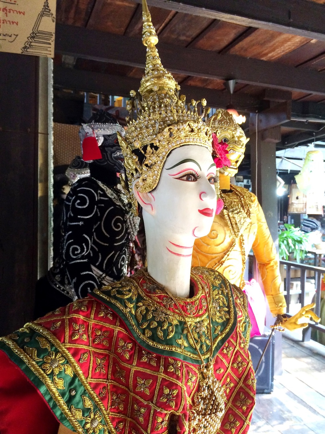 ชาวไทยและชาวต่างชาติที่มาที่นี่ นั่งเรียงแถวสงบเสงี่ยมรอดูหุ่นละครเล็กที่นี่ทั้งนั้น ละครมีรอบบ่ายสองโมงค่ะ ใครมาแต่เช้าก็เดินเล่นไปก่อน จิบกาแฟไป อ่านหนังสือไป ใครจะหอบงานมาทำเพลินๆก็ได้ เพราะที่นี่เงียบสงบ เสียงที่ได้ยินคงมีแต่เสียงเรือหางยาวคอยรับส่งผู้โดยสาร และเสียงคลื่นจากเรือที่กระทบริมฝั่งเท่านั้น