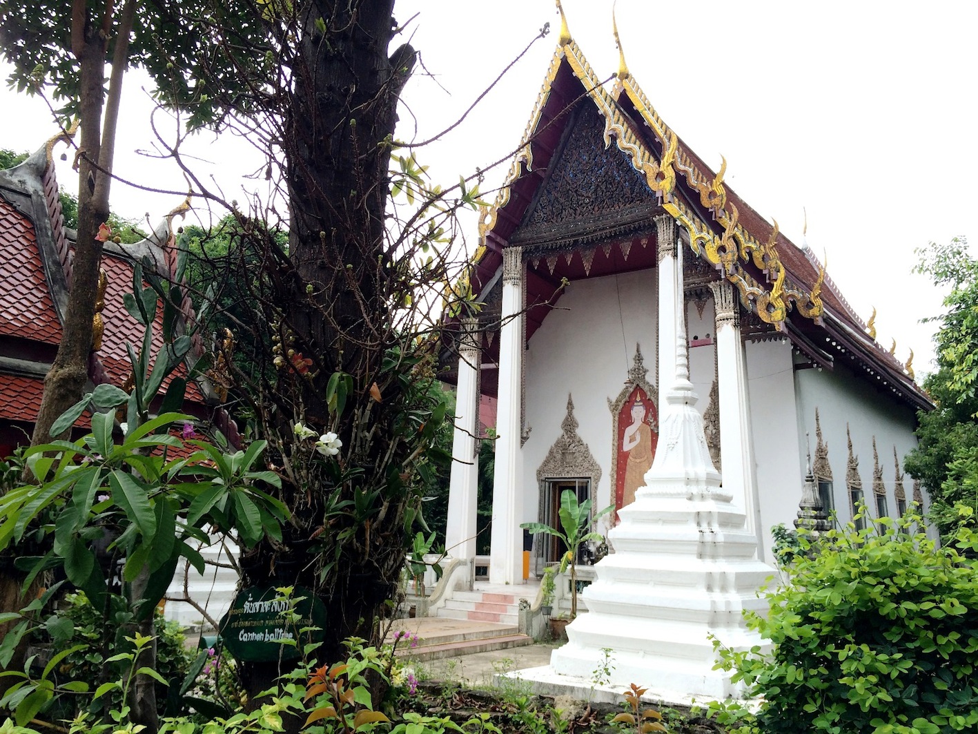 วันอาทิตย์เช้าๆรถไม่ยักติด วิ่งฉิวจากบ้านมาถึงที่หมายในเวลาประมาณครึ่งชั่วโมงเท่านั้น แท๊กซี่เข้าไปจอดสุดซอย 3 ซึ่งมองแล้วเป็นทางตันแน่ แต่ในเมื่อข้อมูลบอกให้มาทางนี้ เราก็ลง มองหาป้ายบอกทาง ไม่เห็นมี เอ๊ะเห็นป้ายเล็ก ไป “วัดคูหาสวรรค์” น่าจะใช่