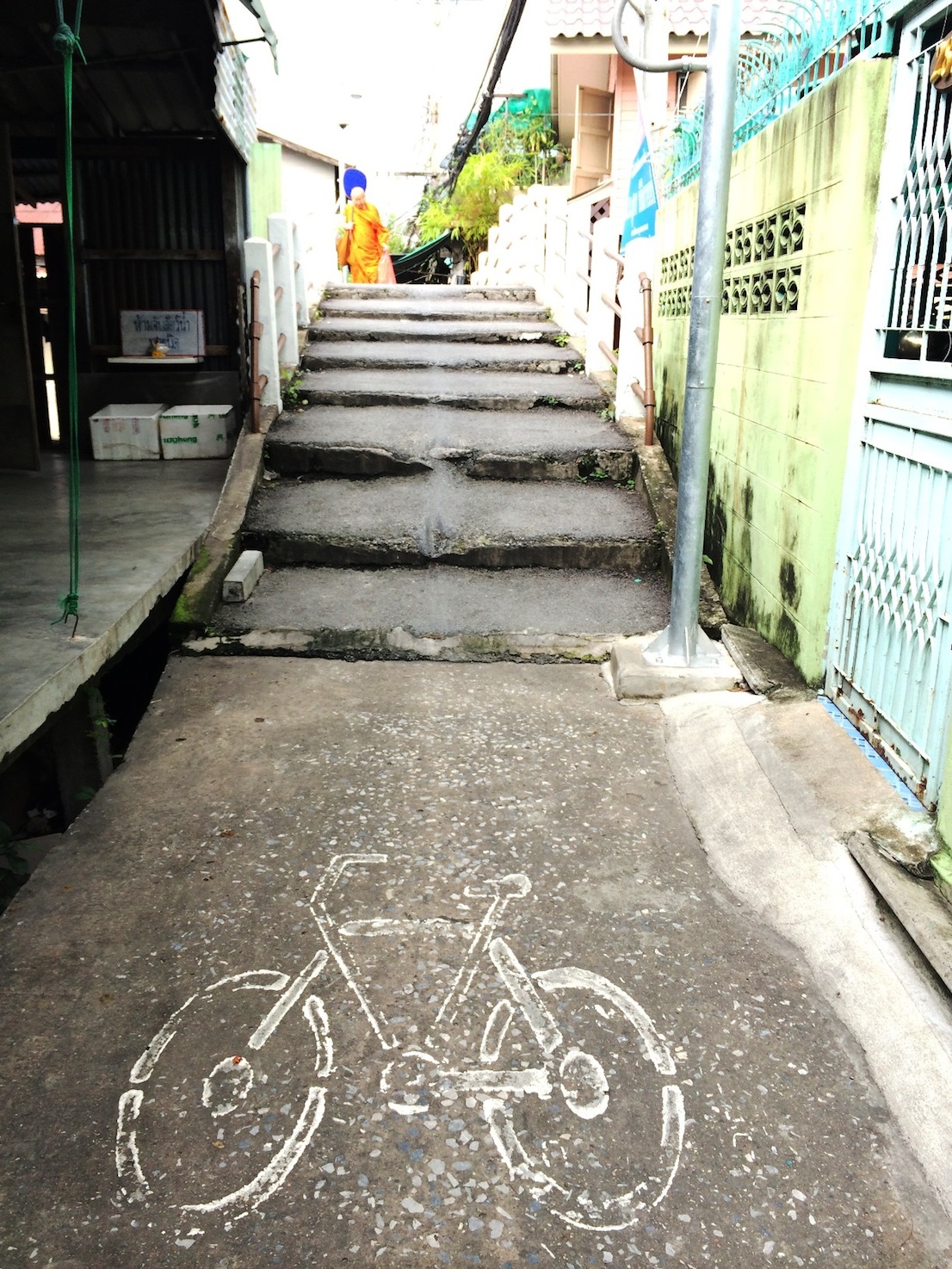 ไปทางนั้นแหละ…ว่าแล้วก็มุ่งหน้าเข้าซอกเล็กๆแค่คนเดินสวนกัน ขึ้นสะพานข้ามคลอง จากบนสะพานก็สามารถมองเห็น “ชุมชนริมคลองบางหลวง” แล้วค่ะ