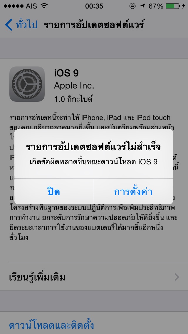กดอัพios9ไม่ได้ค่ะ พอจะโหลดก็ขึ้นว่าผิดพลาด มีวิธีแก้ยังไงคะ