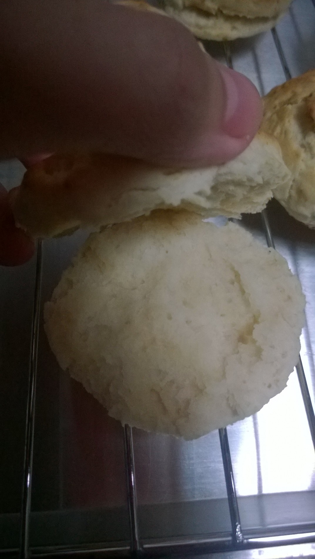 ลองทำครั้งแรกครับ ไม่รู้ว่าถูกหรือป่าวครับ ข้างนอกก็กรอบ นิดๆครับ แต่ข้างในทำไม มันนิ่มอะครับ หรือผมอบยังไม่สุก รบกวนเพื่อนๆช่วยหน่อยครับ เคยกินแต่สโคนของกาโต้ เฮ้า ไม่แน่ใจมันจะเหมือนกันไหม แต่ของกาโต้มันกรอบ อร่อยมาก
