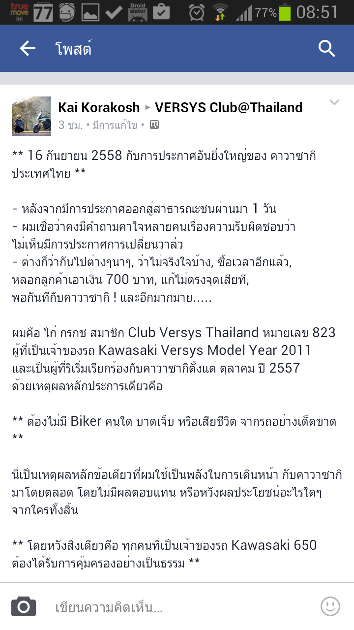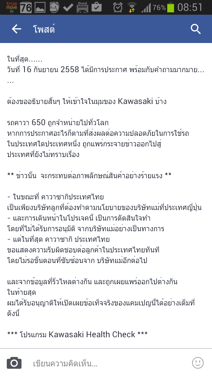 ข่าวความเคลื่อนไหวกรณีปัญหารถ kawasaki 650 จากคุณไก่ cvt
