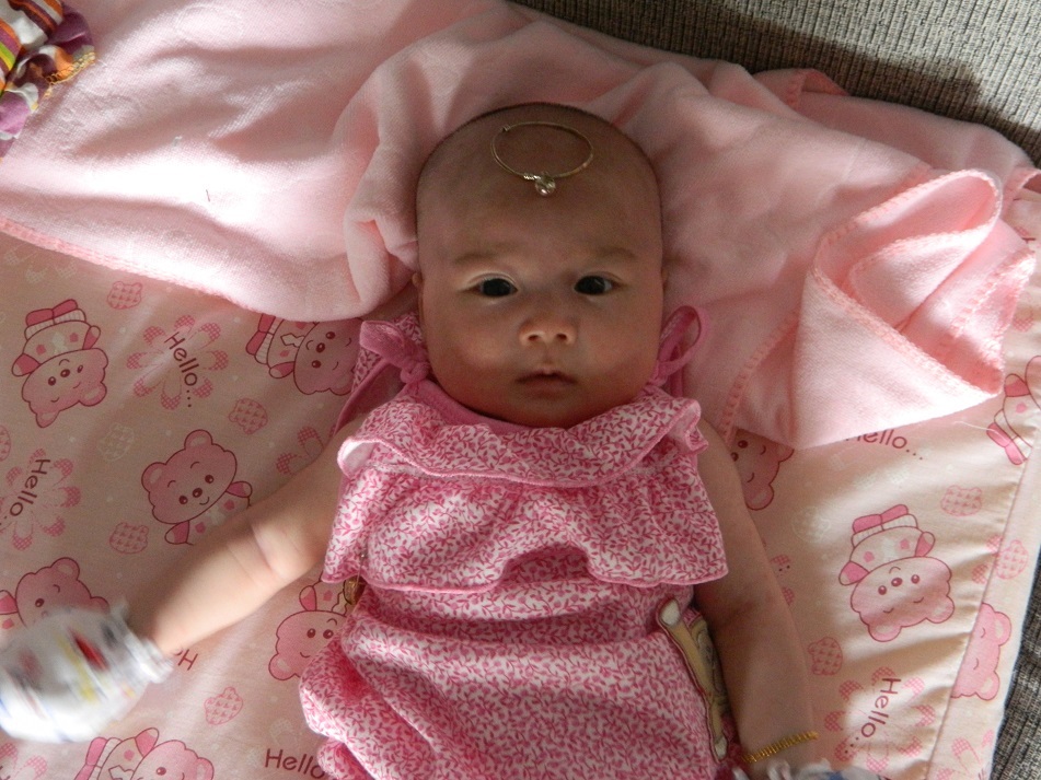 1 เดือน -- อันนี้ โกนผมไฟวันแรกครับ ครบหนึ่งเดือนเด็กปกติต้องโกนผมไฟครับ