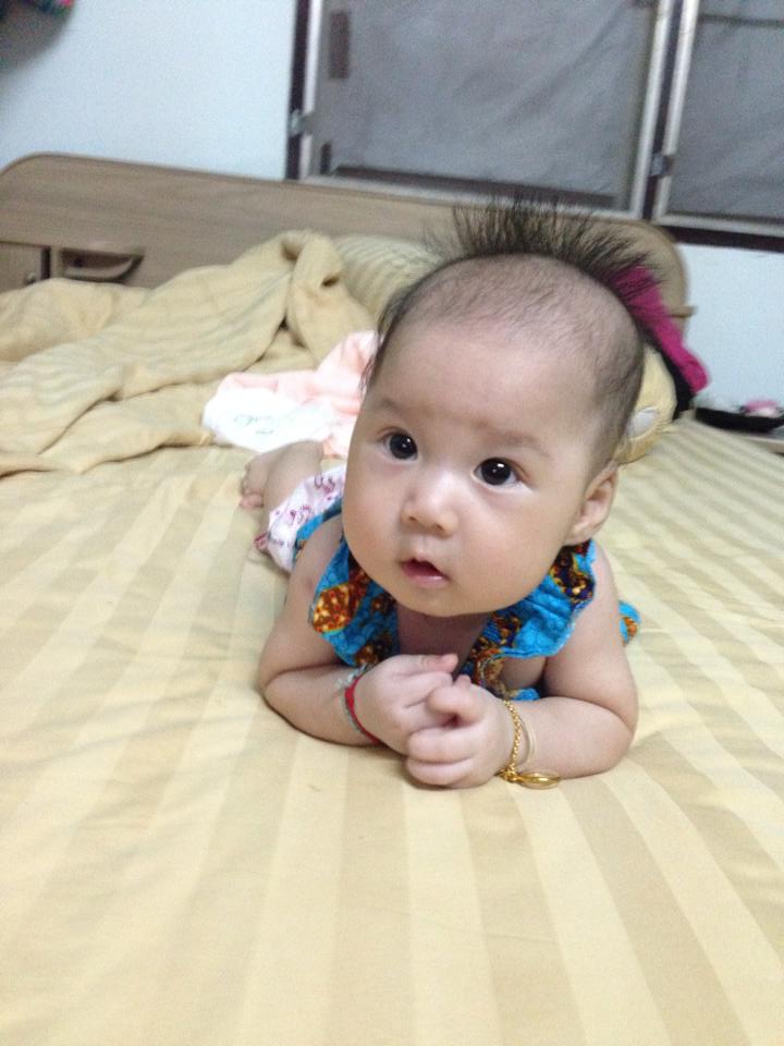 4 เดือน -- เริ่มมีผมขึ้น บางๆ แก้มยังออกเหมือนเดิม