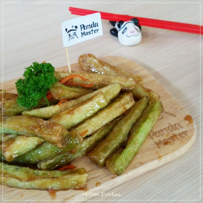 และแล้วก็ได้เวลาเข้าสู่ช่วง My favorite menu กันซักที นอกจากน้ำซุปโจ๊กที่ถูกปากคนไม่กินเผ็ดอย่างที่ได้กล่าวมาแล้ว Panda Sweet & Sour Fries หรือ เมนูผักทอดพิสดาร ที่เห็นเป็นครั้งแรกก็ตกหลุมหลงรัก เพราะดูคลับคล้ายคลับคาเหมือนเฟรนซ์ฟรายชิ้นใหญ่ แต่สะดุดตาที่สีเขียวเลยรู้ว่ามันคือผัก